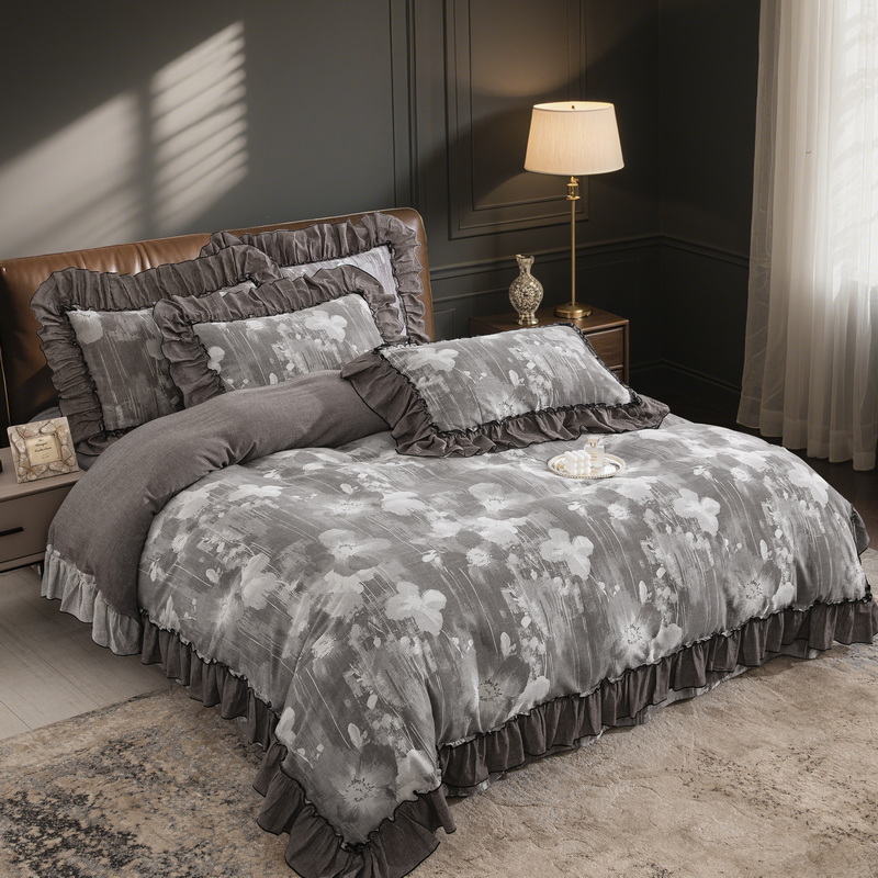 鲁爱家纺供货 2025新款韩版色织提花四件套 花都-灰