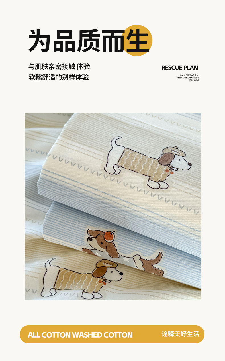 • 91家纺网 家纺一手货源 找家纺 尚帛 2026新款全棉品质喷气印花爆款四件套 多规格套件 单品系列-单床单 奔跑小狗
