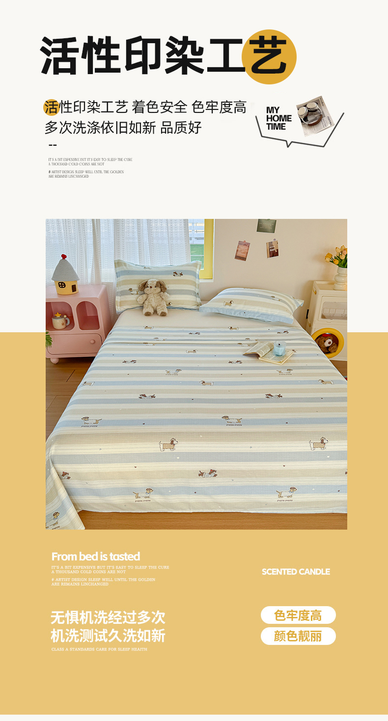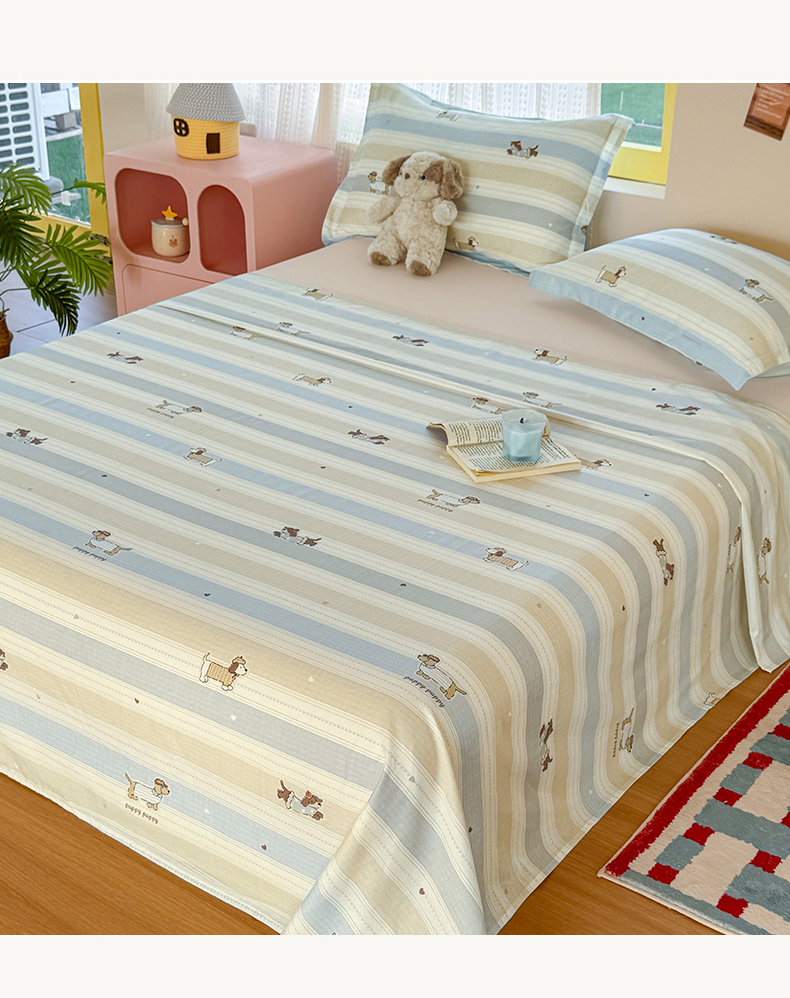 尚帛 2026新款全棉品质喷气印花爆款四件套 多规格套件 单品系列-单床单 奔跑小狗