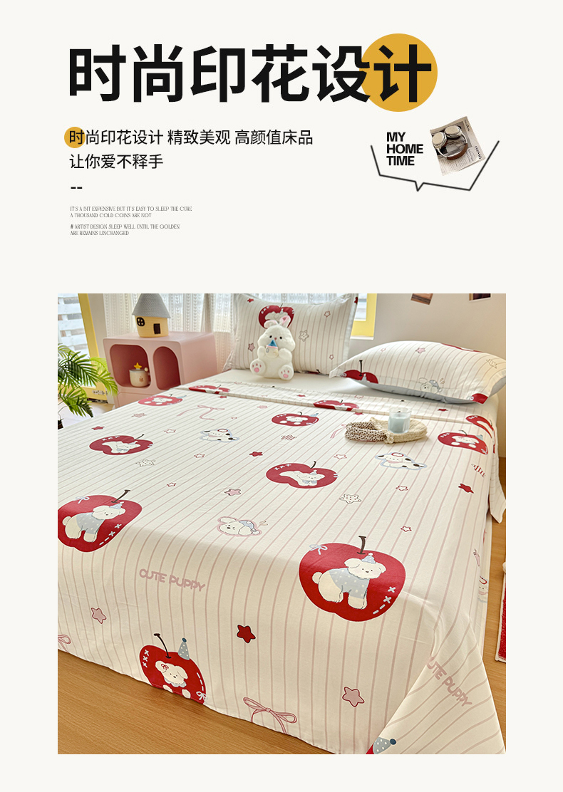 尚帛 2026新款全棉品质喷气印花爆款四件套 多规格套件 单品系列-单床单 派对柯基