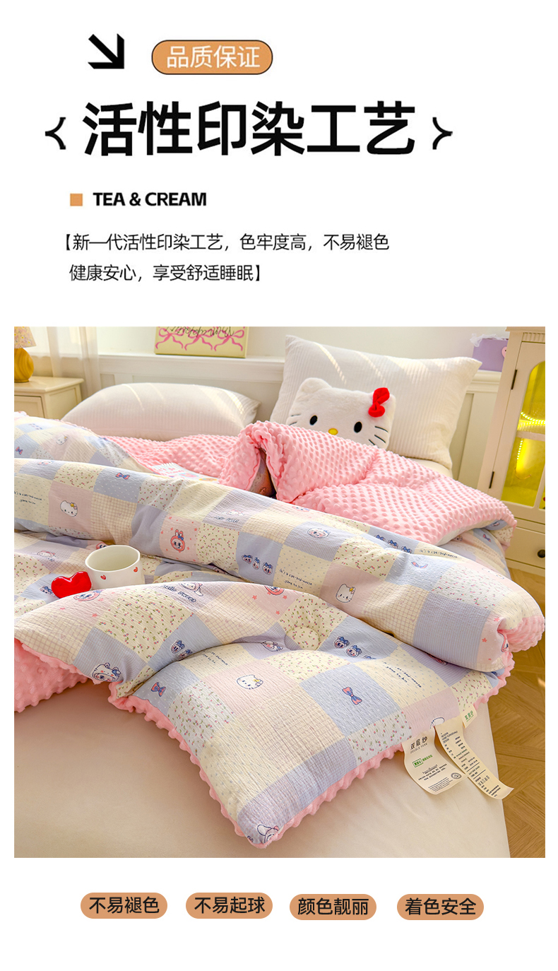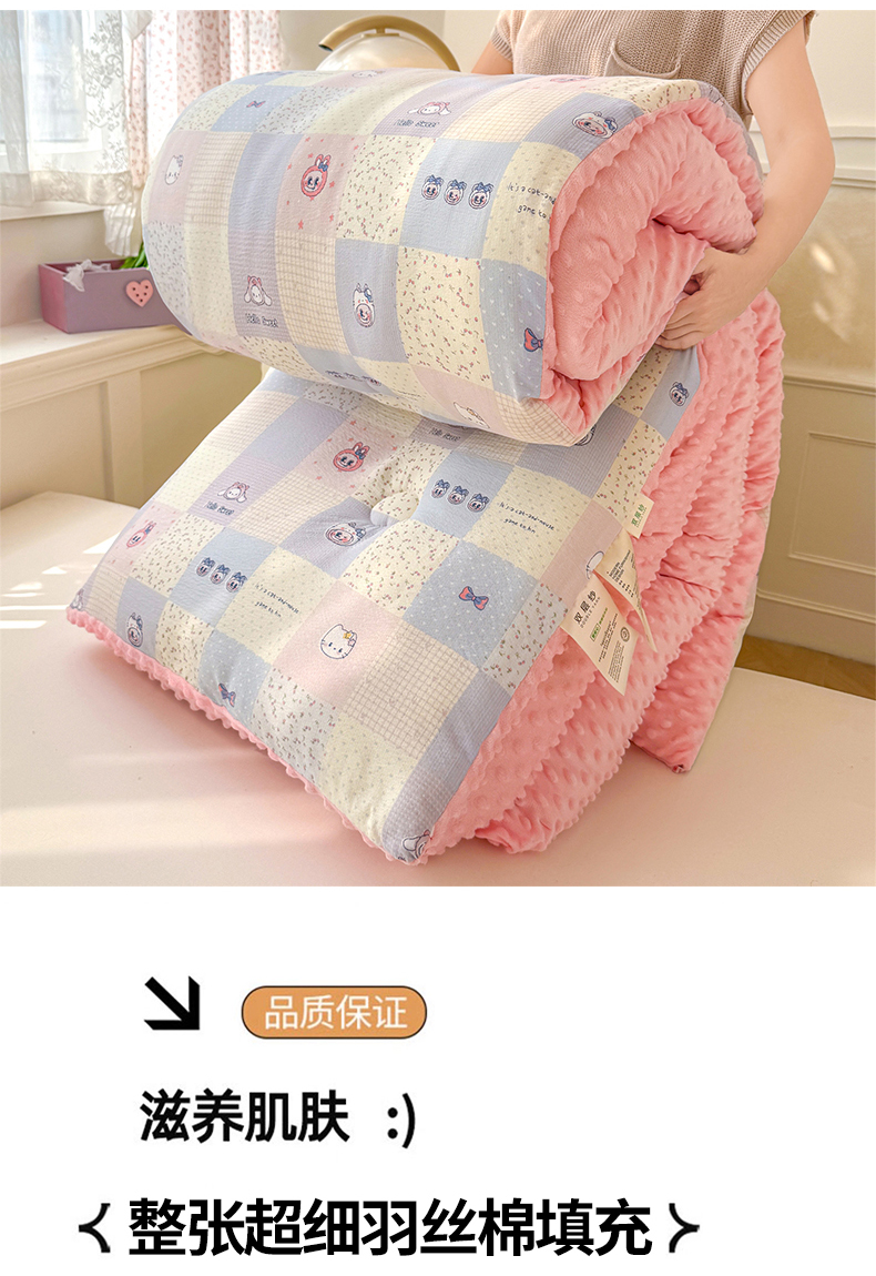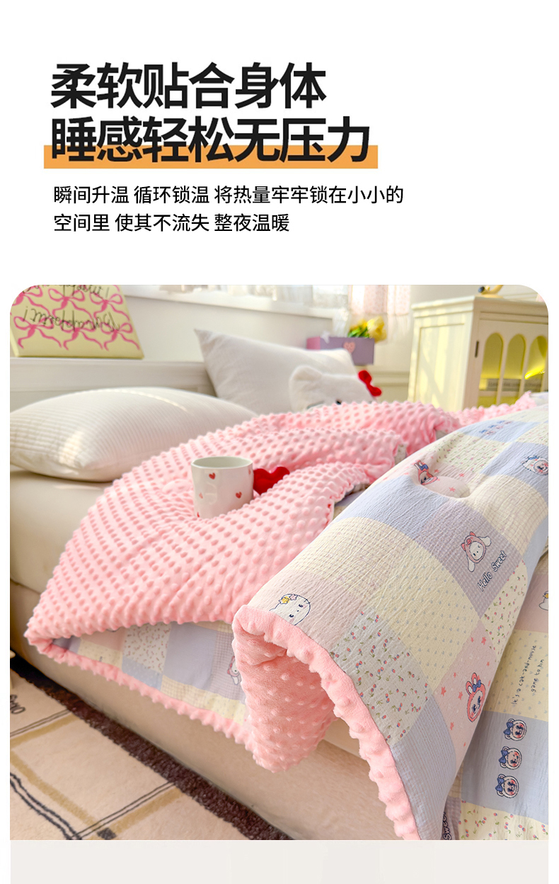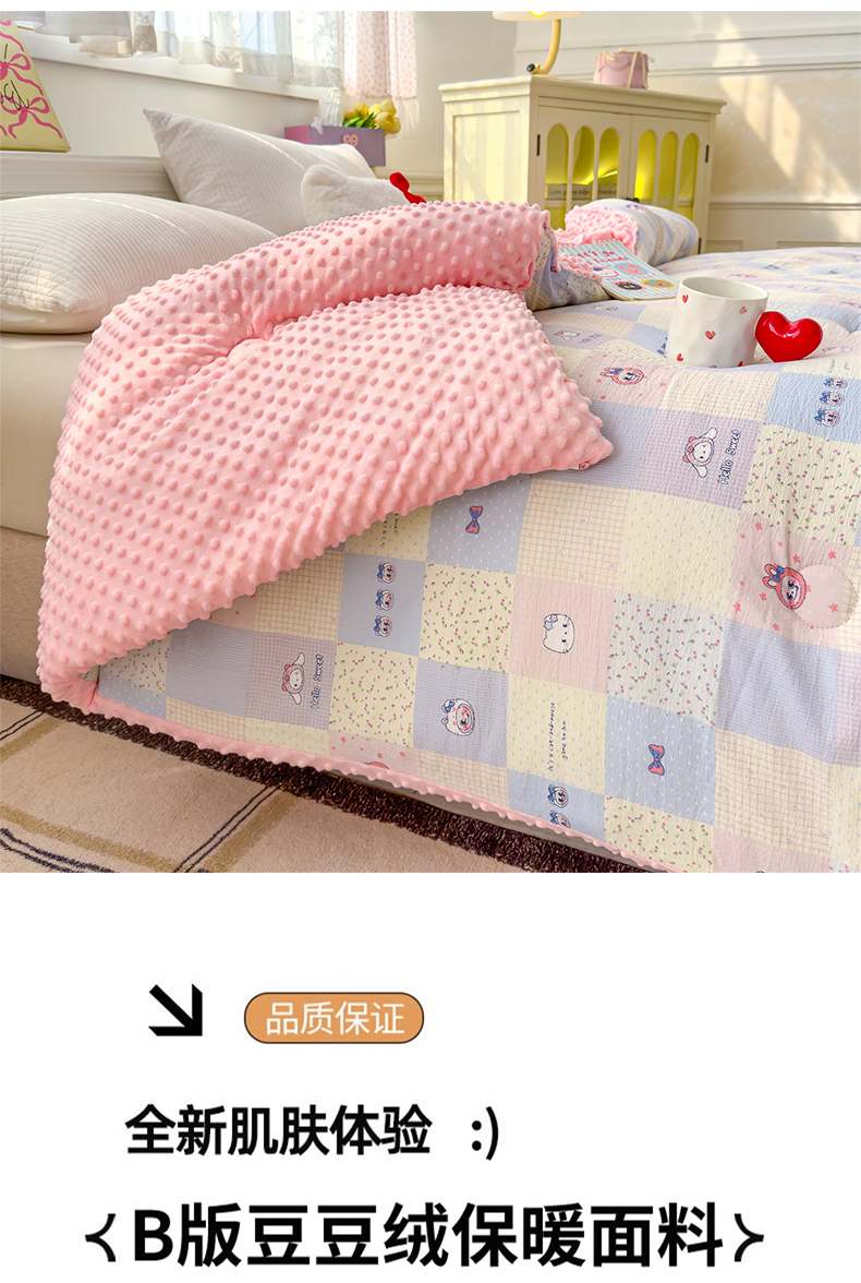 (总)好梦来家纺(原锦茂家纺) 2025新款水洗高克重双层纱豆豆被子加厚保暖被芯春秋被冬被,波点世界,蝴蝶结,叶叶相恋,小女孩,蔷薇之恋-紫,蔷薇之恋-绿,奇幻之旅,美乐蒂,腊肠狗,灰豹纹,秘境,格子熊