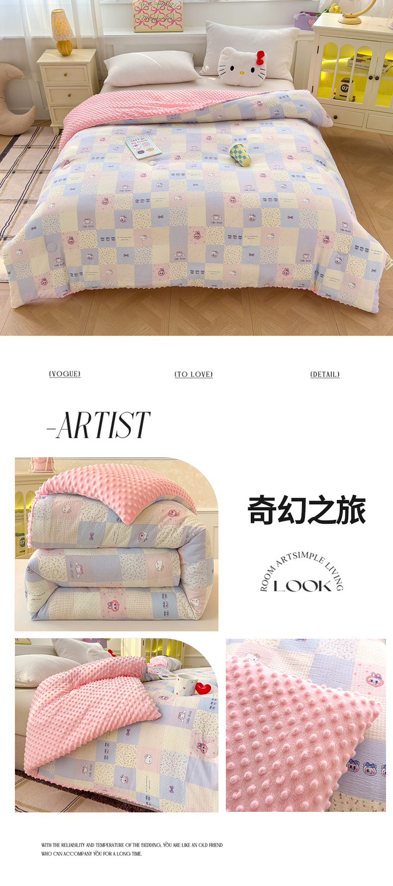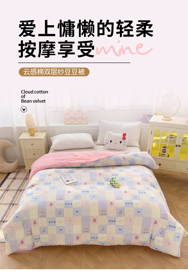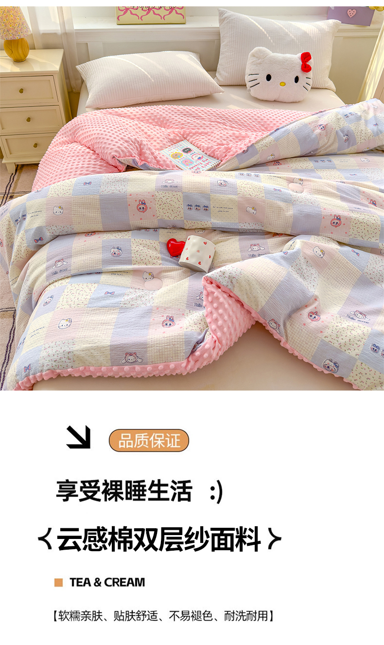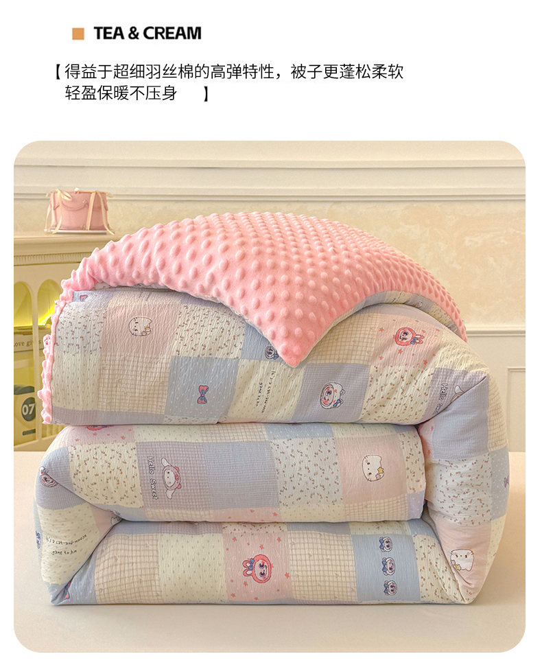(总)好梦来家纺(原锦茂家纺) 2025新款水洗高克重双层纱豆豆被子加厚保暖被芯春秋被冬被,波点世界,蝴蝶结,叶叶相恋,小女孩,蔷薇之恋-紫,蔷薇之恋-绿,奇幻之旅,美乐蒂,腊肠狗,灰豹纹,秘境,格子熊