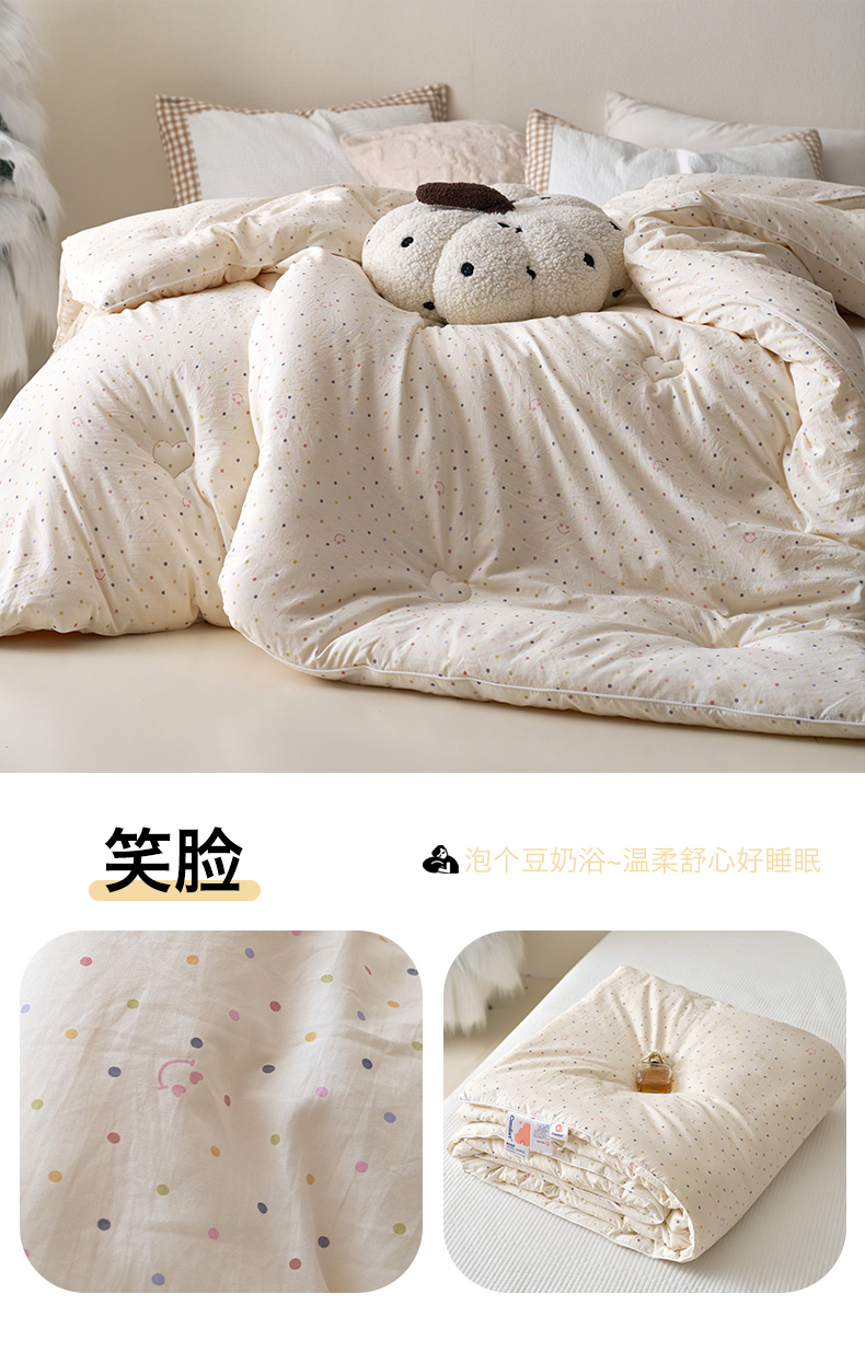 • 91家纺网 家纺一手货源 找家纺 (总)久典家居 2025新款云糯棉印花大豆被被子被芯,组合图仅供展示不可下单,爱心,花漾,淘气狗,小熊,笑脸,樱桃