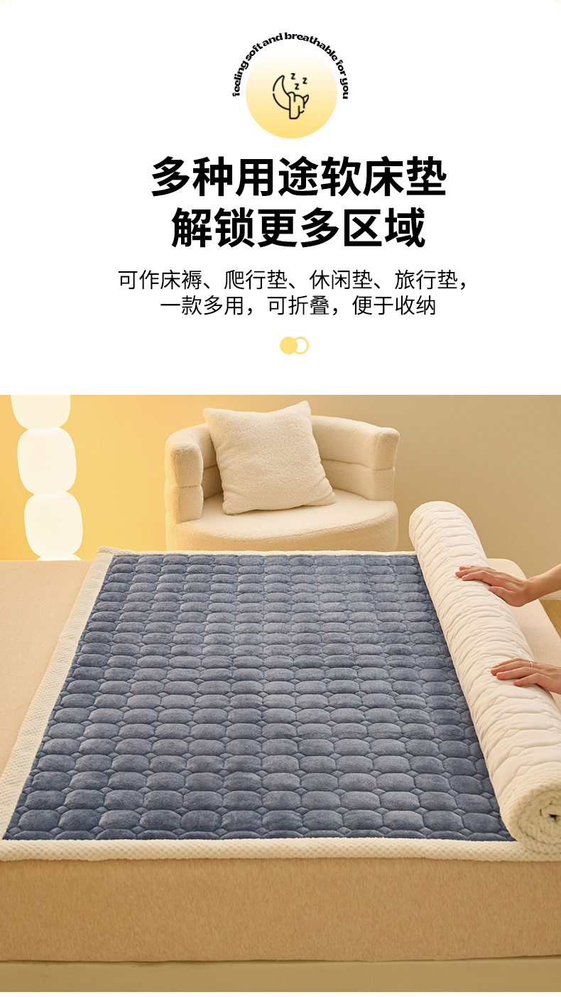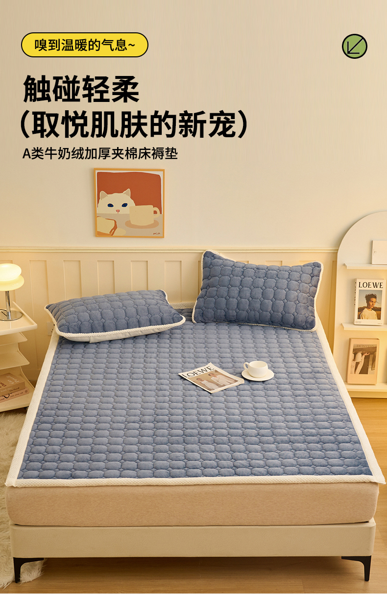 当前位置: 91家纺网 > 商品网购 > 床垫/床褥 > 普通床垫 > 缦吉 2025冬季新款亲肤舒适简约牛奶绒床垫床褥子 深蓝