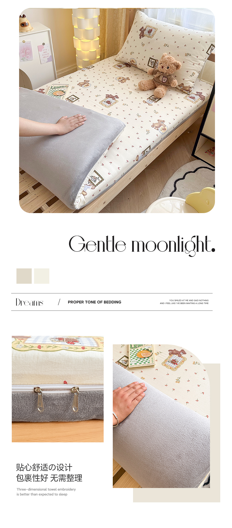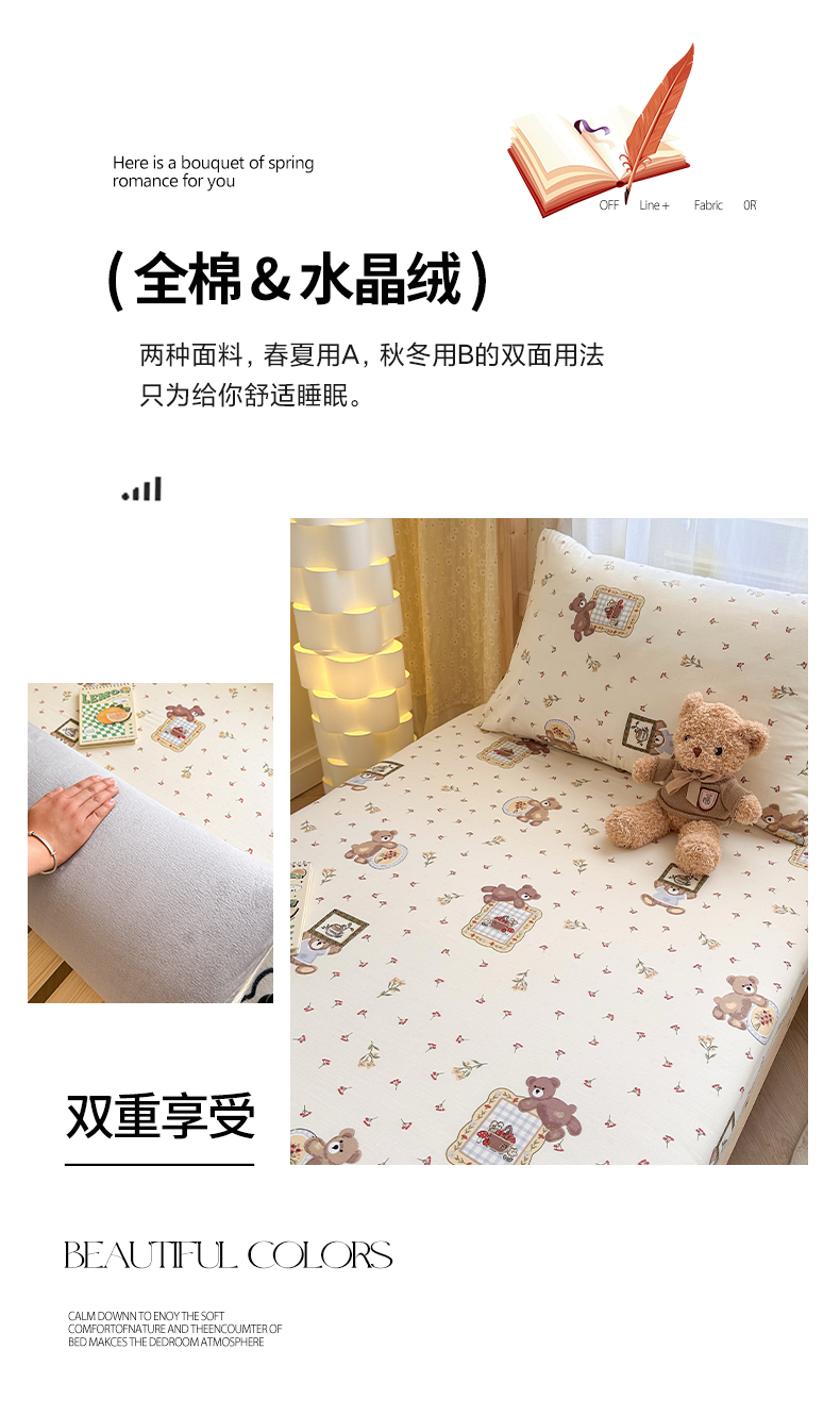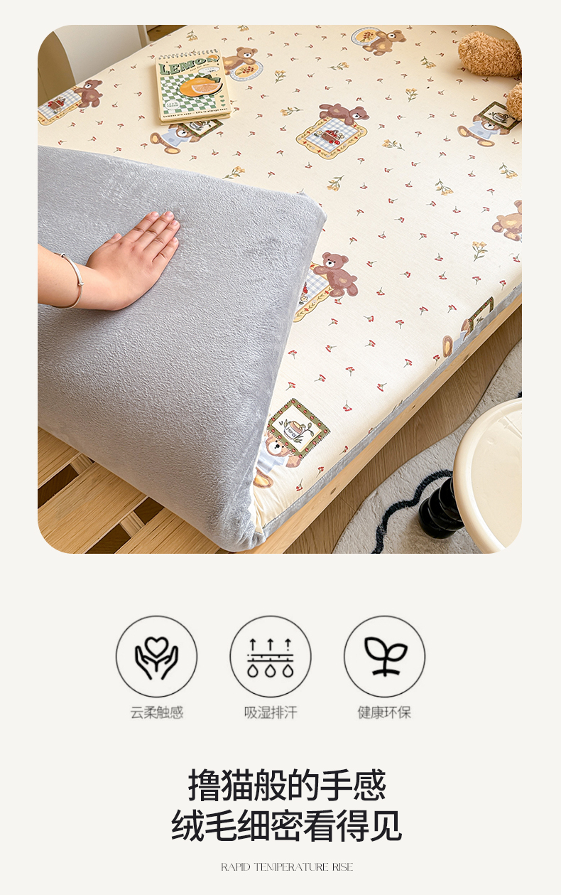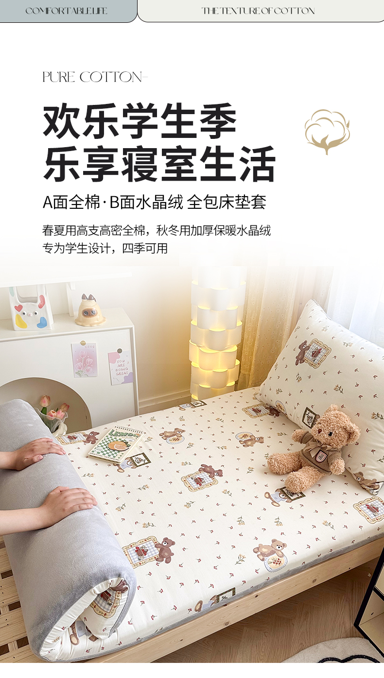 商品名称:妮可 2025热款花型全包床垫套褥子套(AB双版A全棉B绒) 拍照小熊