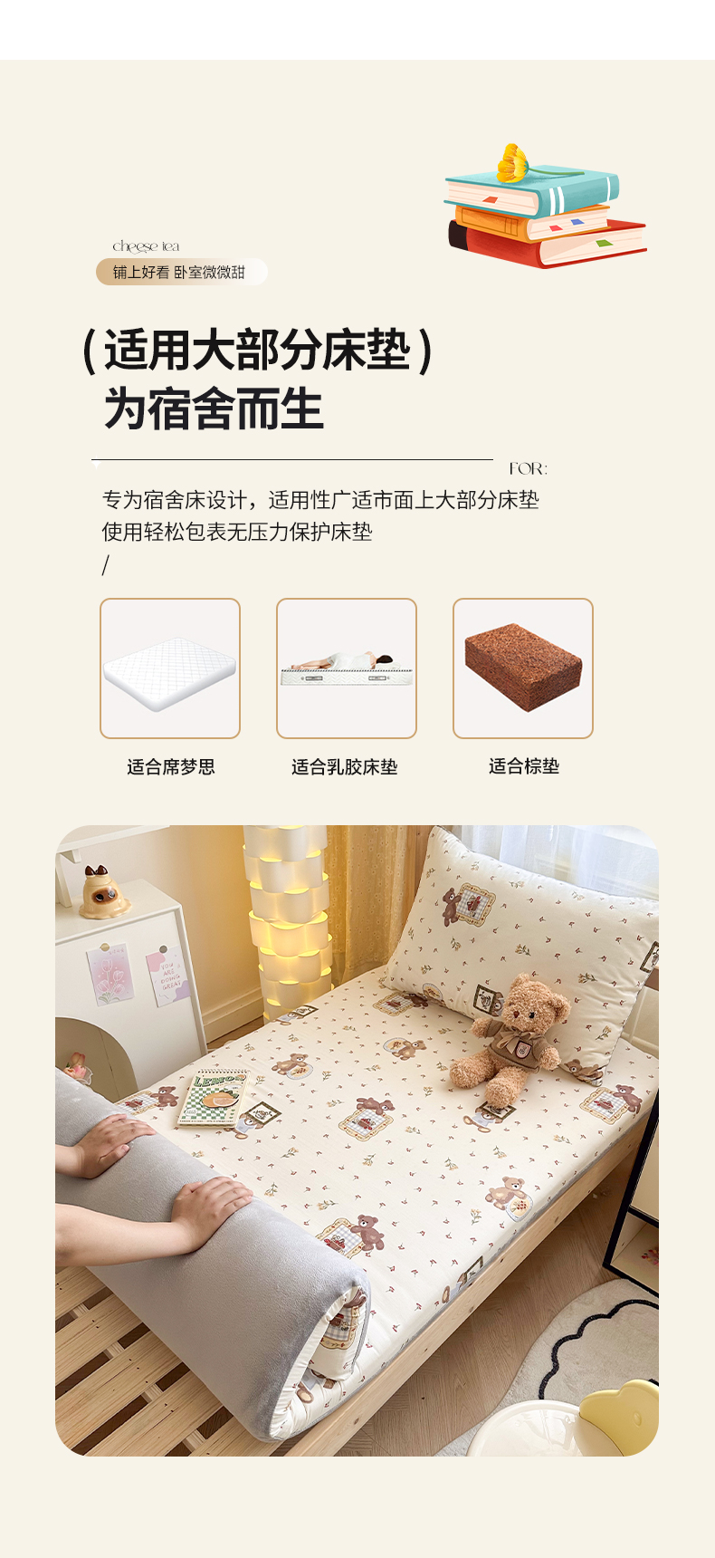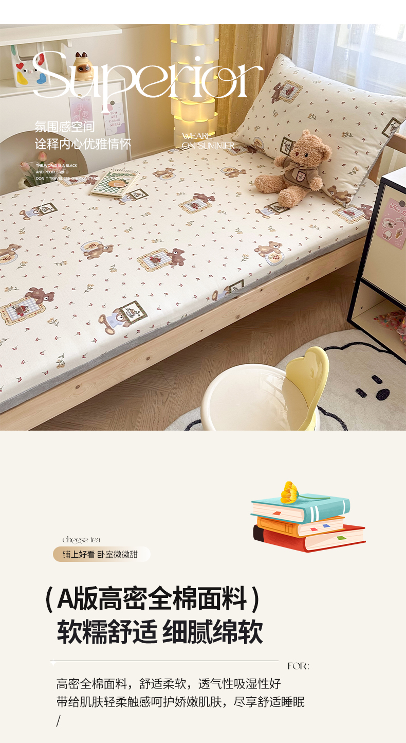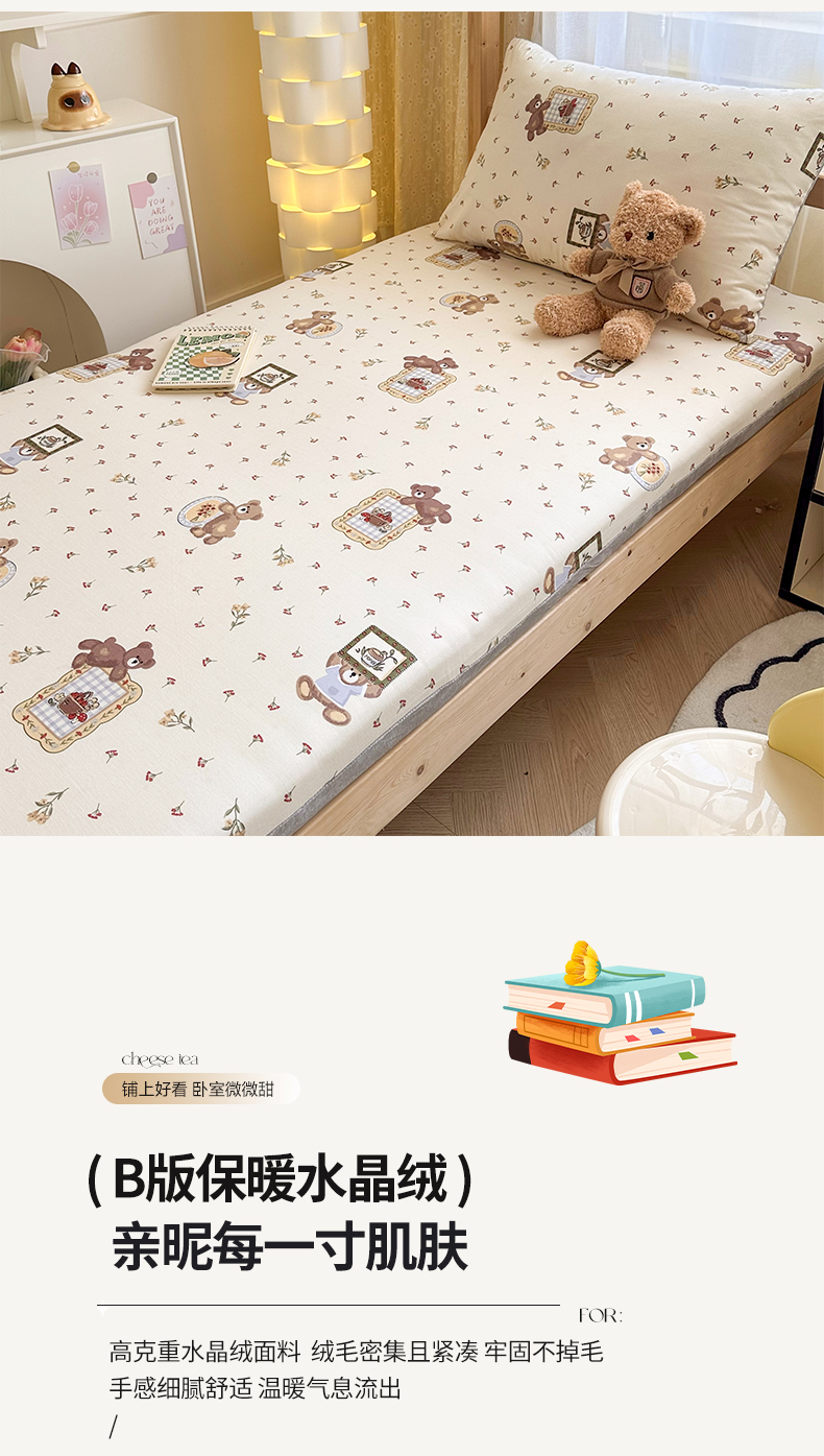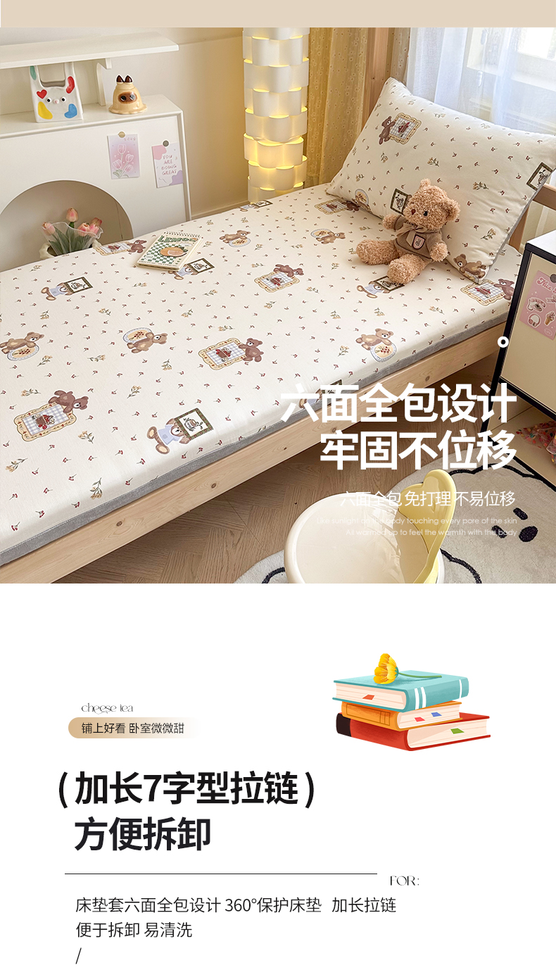 商品名称:妮可 2025热款花型全包床垫套褥子套(AB双版A全棉B绒) 拍照小熊