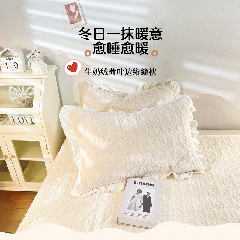 (总)妮可 2025秋冬新款加厚牛奶绒多功能荷叶边纯色枕套,抹茶绿,蜜桃粉,奶油白,深海蓝,天空蓝,温暖灰,芋泥紫