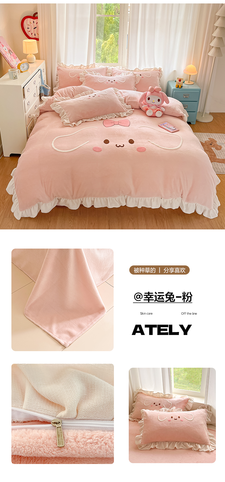 当前位置: 91家纺网 > 商品网购 > 床品套件 > 四件套 > 牛奶绒四件套 > 梦之岛 2025新款高克重大版牛奶绒卡通毛巾绣四件套 幸运兔-粉