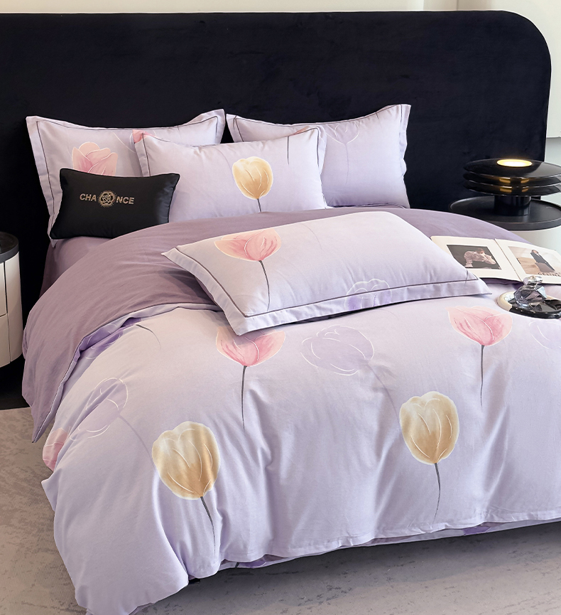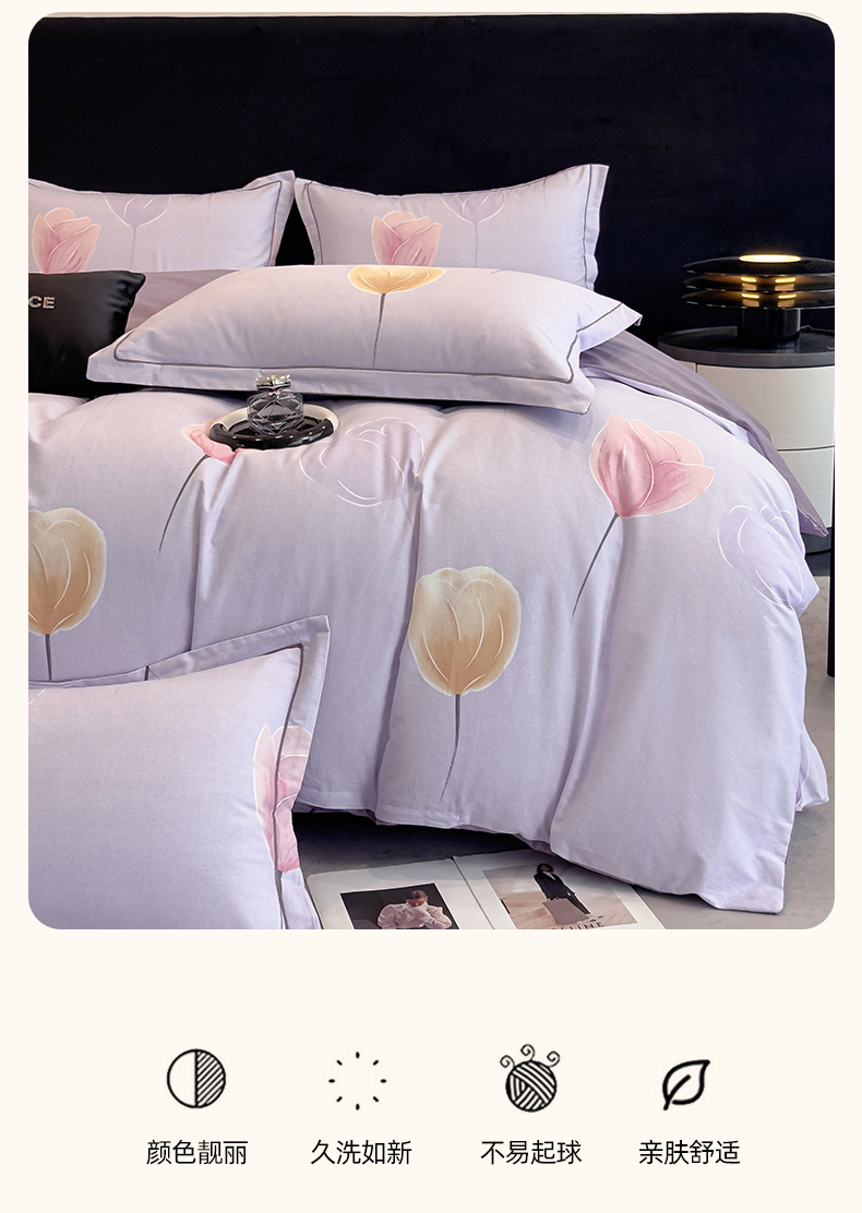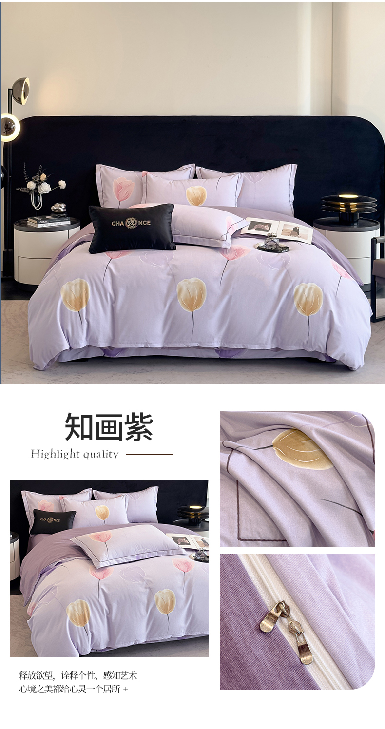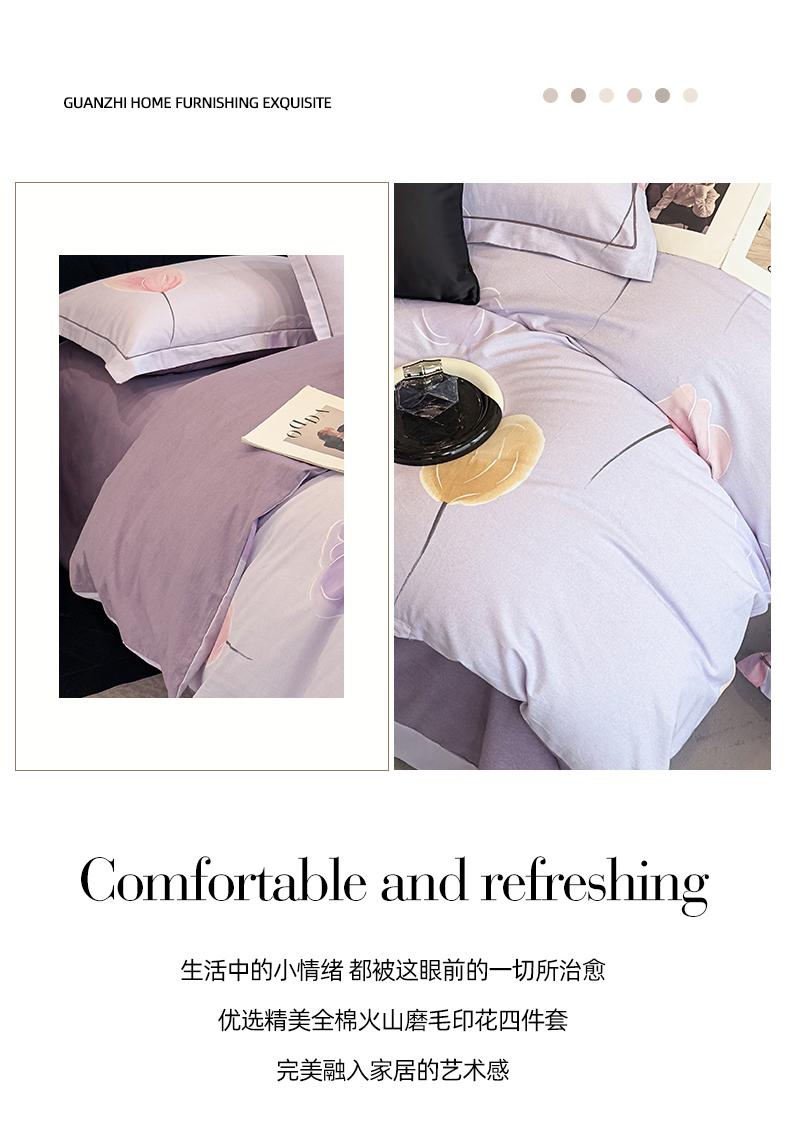 商品名称:雲归梦 2025新款全棉火山磨毛精梳棉生态磨毛纯棉四件套 知画紫