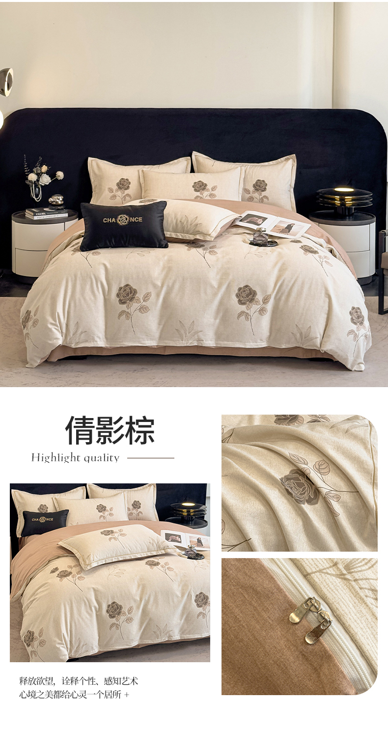 (总)雲归梦 2025新款全棉火山磨毛精梳棉生态磨毛纯棉四件套,玫瑰香雅,繁花绽放棕,花语诺,古韵佳人,格风,梵希 桔,贝影,巴特罗-粉,极光蓝,极光绿,经典爱恋,经典风,经典国度,静初黄,浪漫时光棕,利奥 灰,恋爱 叶,爱情海,墨雨人间,南瓜甜心咖,欧雅 绿,飘摇蓝,飘颖,倩影棕,沁语繁花粉,轻盈花语豆沙,情歌 灰,事事如意,香叶青春,星晴 咖,叶秋 紫,悠闲 米,悠悠叶,知画紫