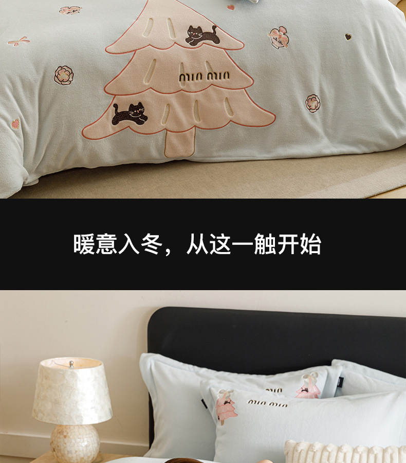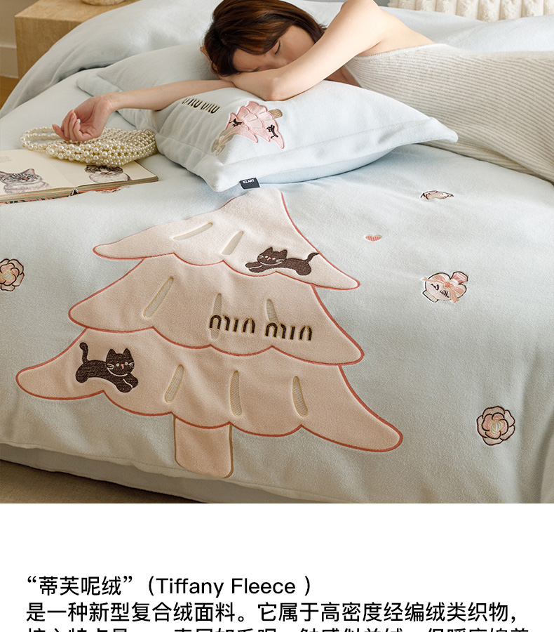 商品名称:卡姿家纺 2025秋冬仿羊绒毛呢触感蒂芙呢绒— 香氛圣诞树 香氛圣诞树-蓝