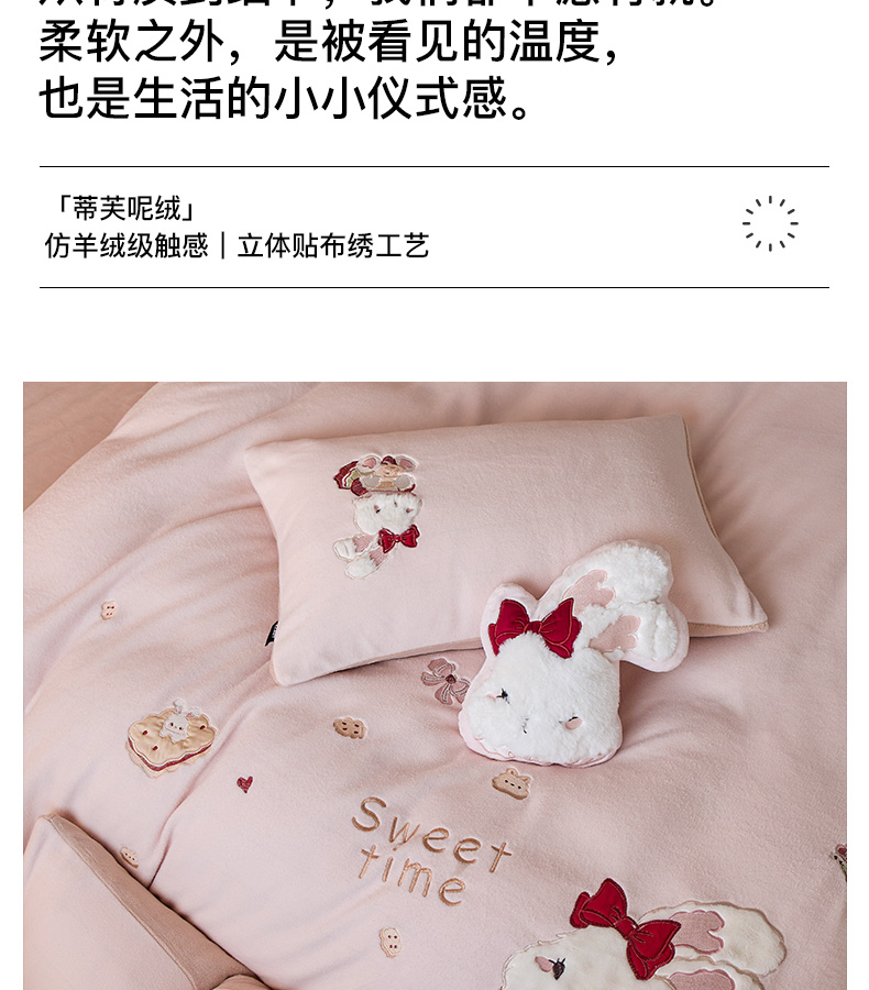 商品名称:(总)卡姿家纺 2025秋冬仿羊绒毛呢触感蒂芙呢绒—兔子甜品屋