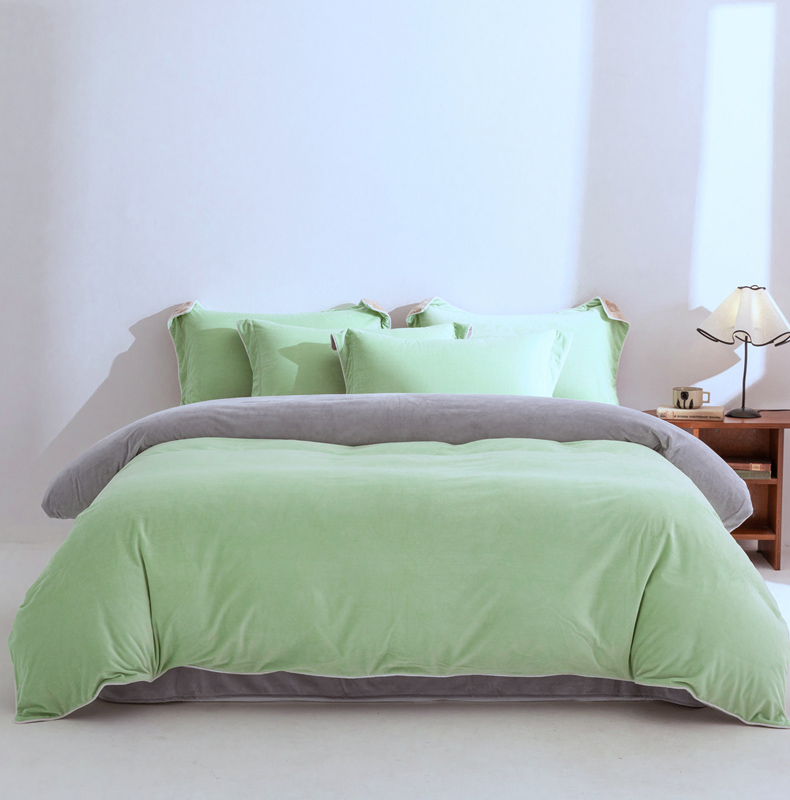 商品名称:安力森/诚臻酒店用品 2025新款麻绳婴儿绒四件套秋冬加厚亲肤保暖卧室床品套件 芽绿-奶咖