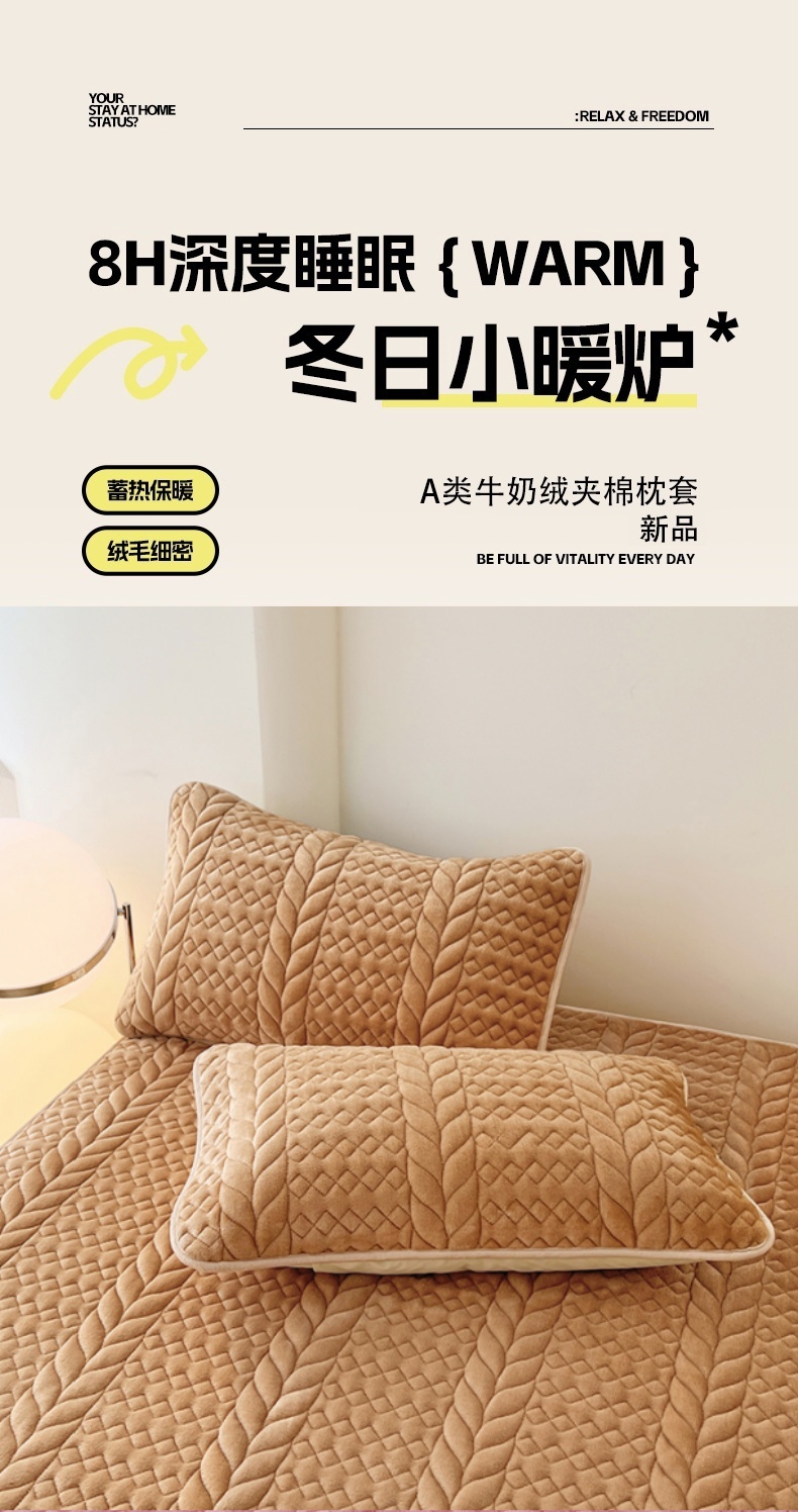 商品名称:梦舒羽 2025新款A类牛奶绒夹棉枕套单人宿舍枕芯套枕头套一对-轻奢 轻奢包边款-奶茶咖
