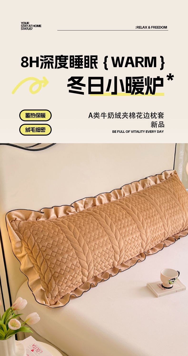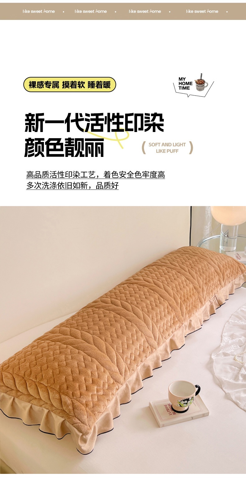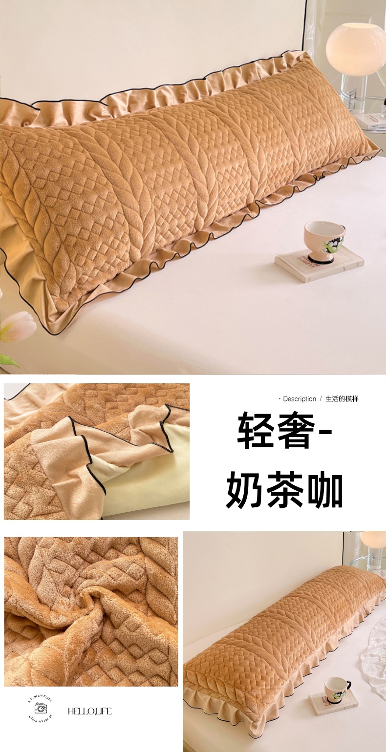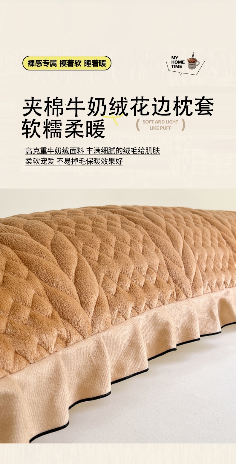 商品名称:梦舒羽 2025新款A类牛奶绒夹棉花边枕套情侣双人加长枕芯套枕头套-轻奢 花边轻奢款-奶茶咖