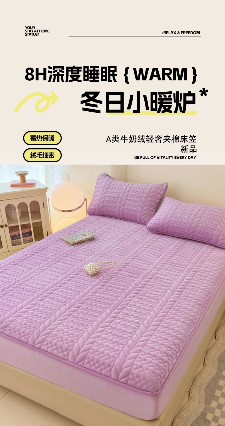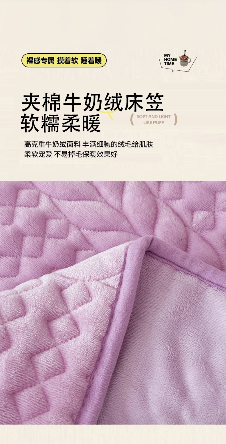 • 91家纺网 家纺一手货源 找家纺 梦舒羽 2025新款A类牛奶绒夹棉床笠床单床盖床罩床护垫床垫保护罩三件套-轻奢 轻奢款-梦幻紫