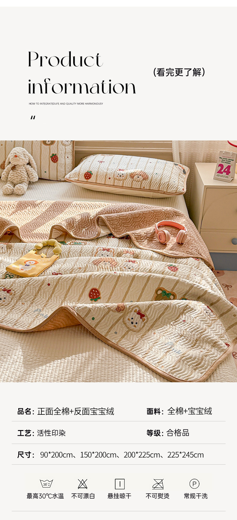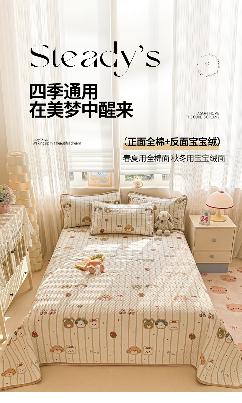 (总)布兰鸟家纺【1店】 2025新款全棉宝宝绒夹棉床盖单品床盖床盖单件(四季换面用),梦迪乐园,贝贝南瓜,达乐宝贝,格彩小象,美吉宠宝,鲜花小马,心动时刻,阳光狮子,组合图仅做展示不可下单