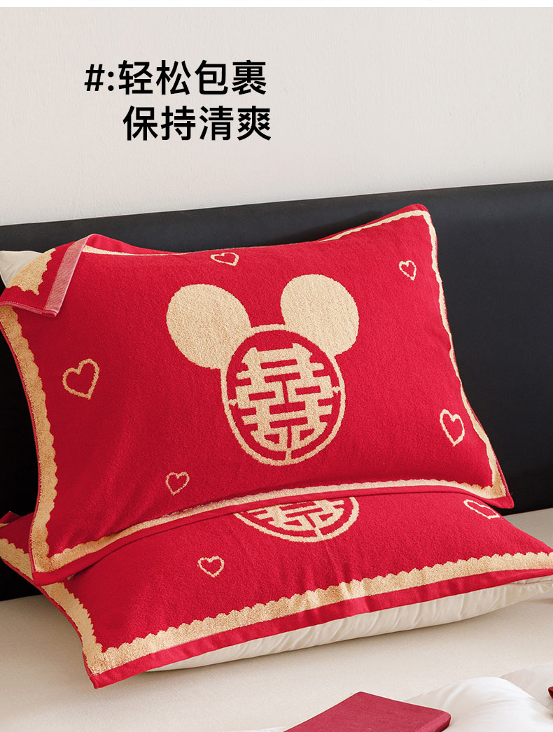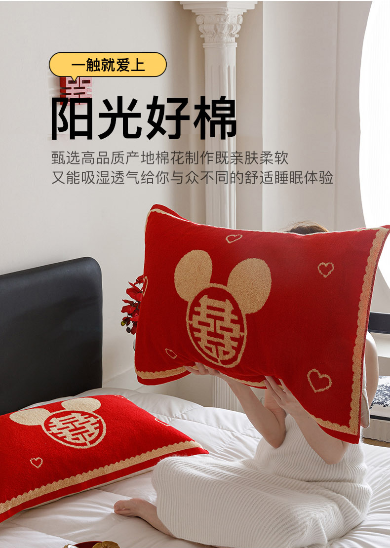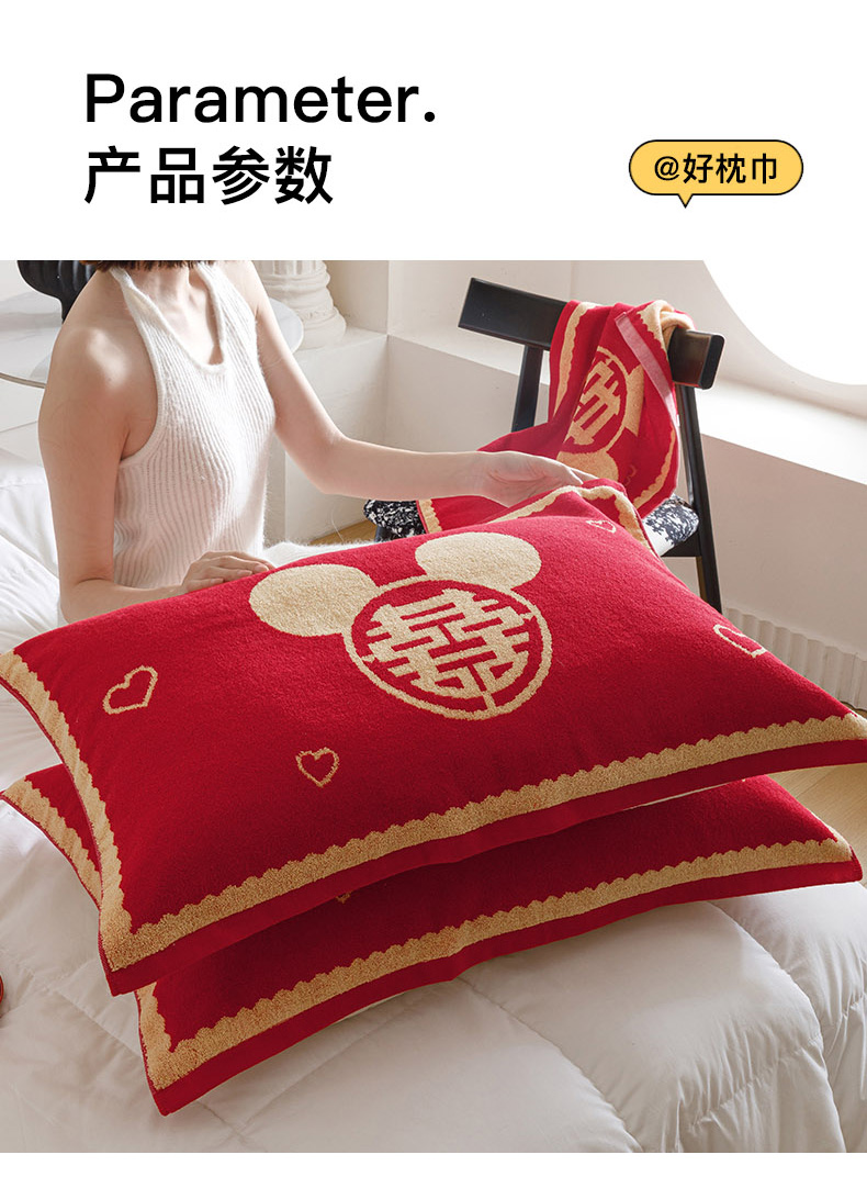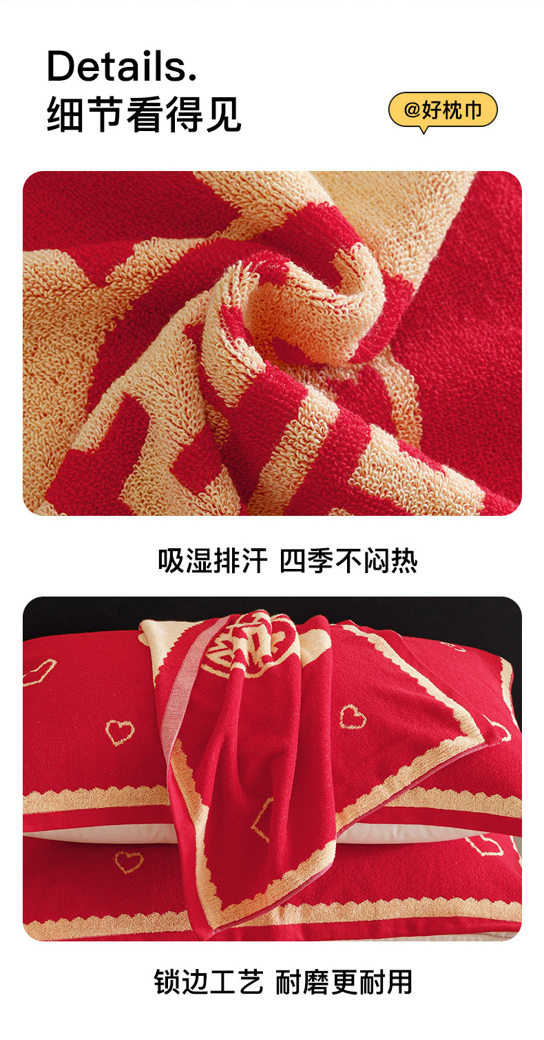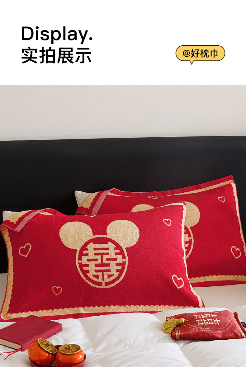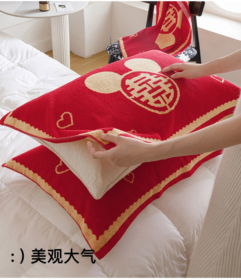 爱港家纺 2025专版新款老式全棉大红枕巾结婚枕巾喜庆百福枕巾 童话喜韵