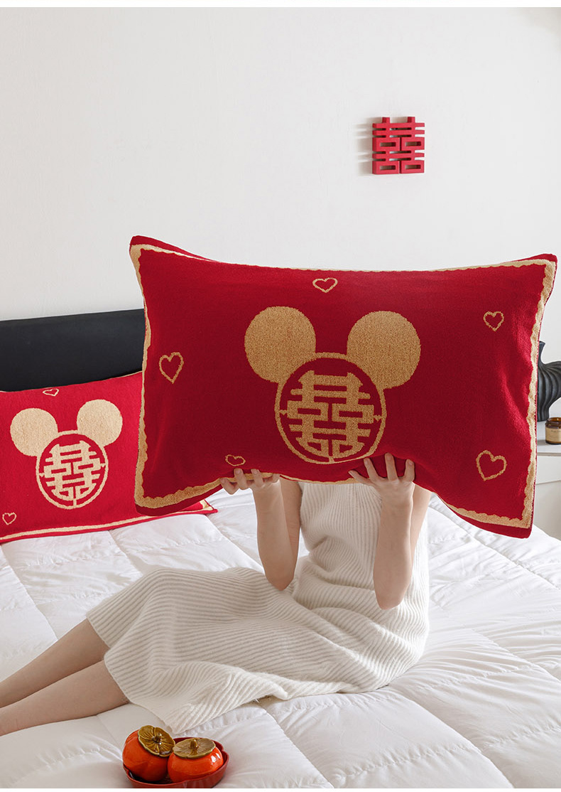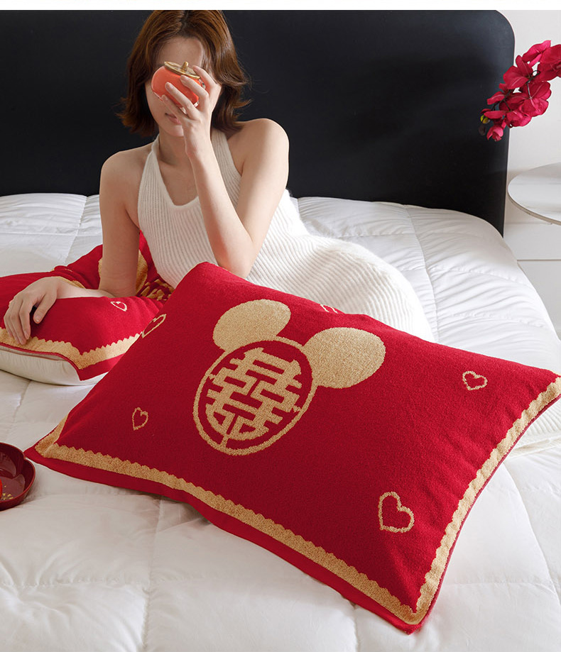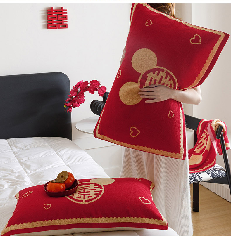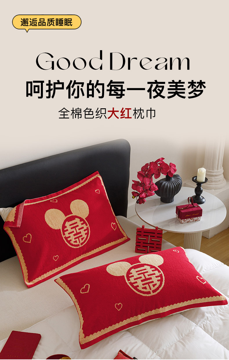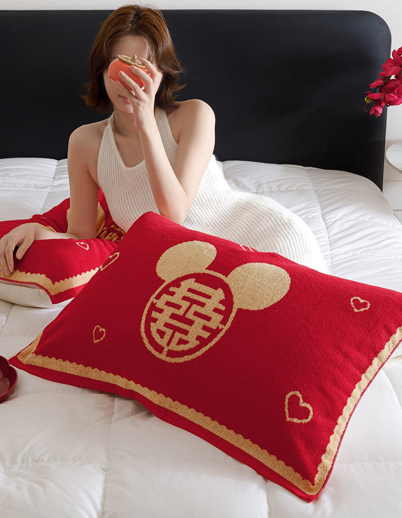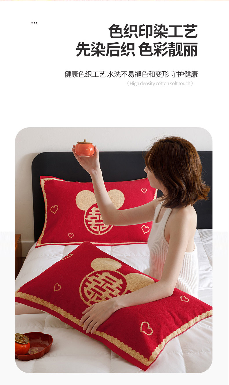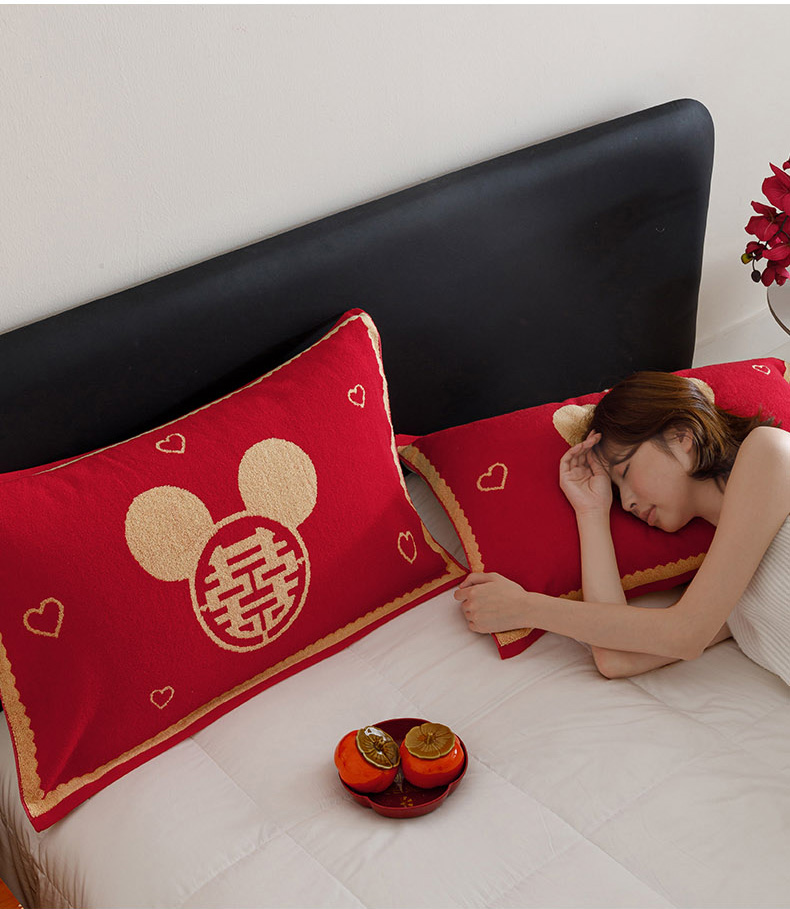爱港家纺 2025专版新款老式全棉大红枕巾结婚枕巾喜庆百福枕巾 童话喜韵