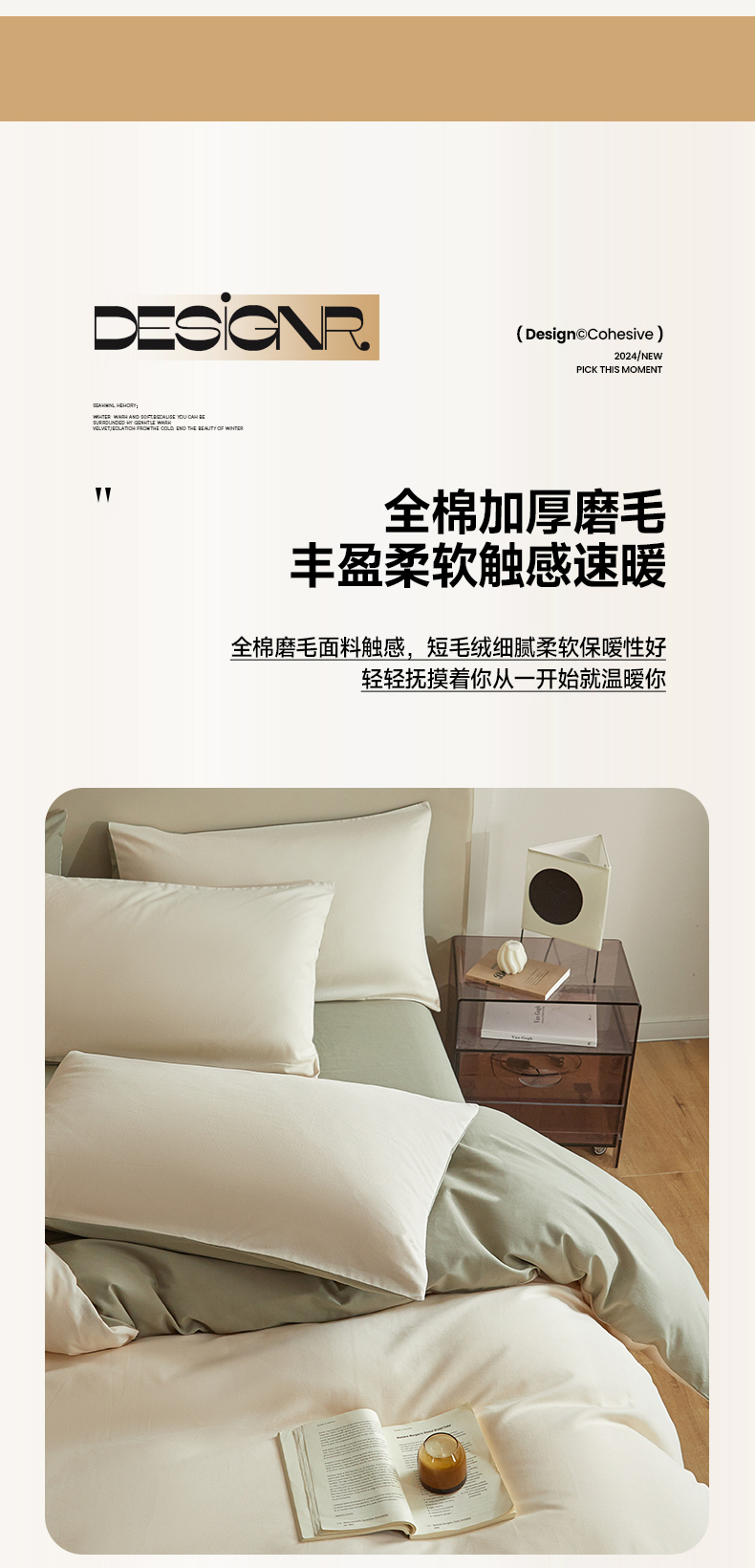 卓越家纺 2025新款全棉加厚磨毛四件套 香草抹茶
