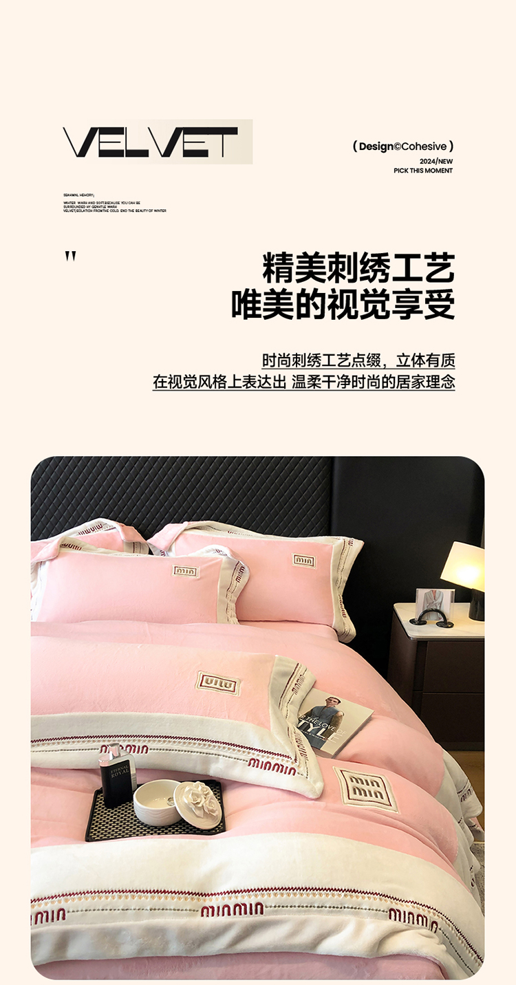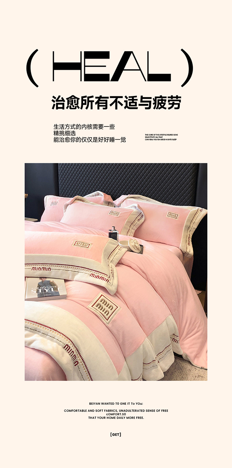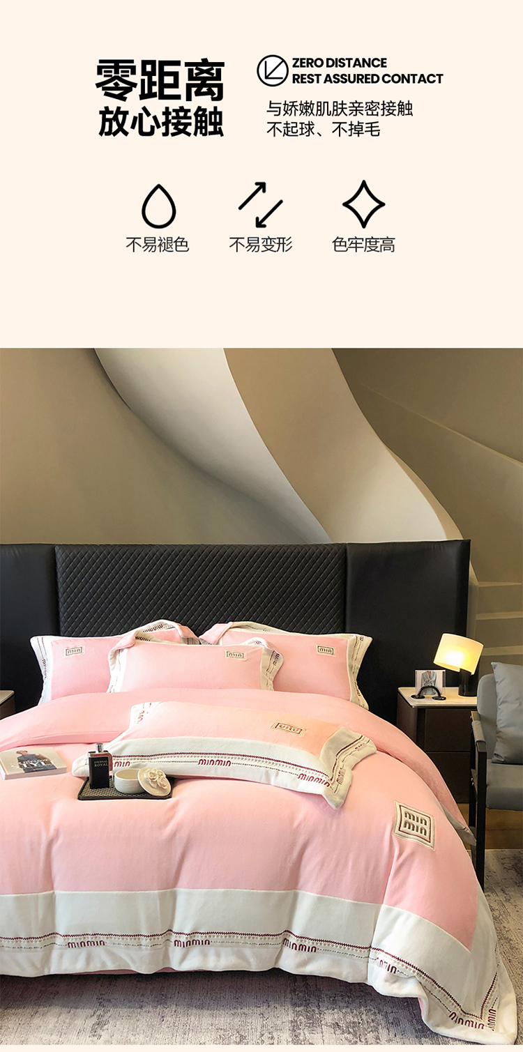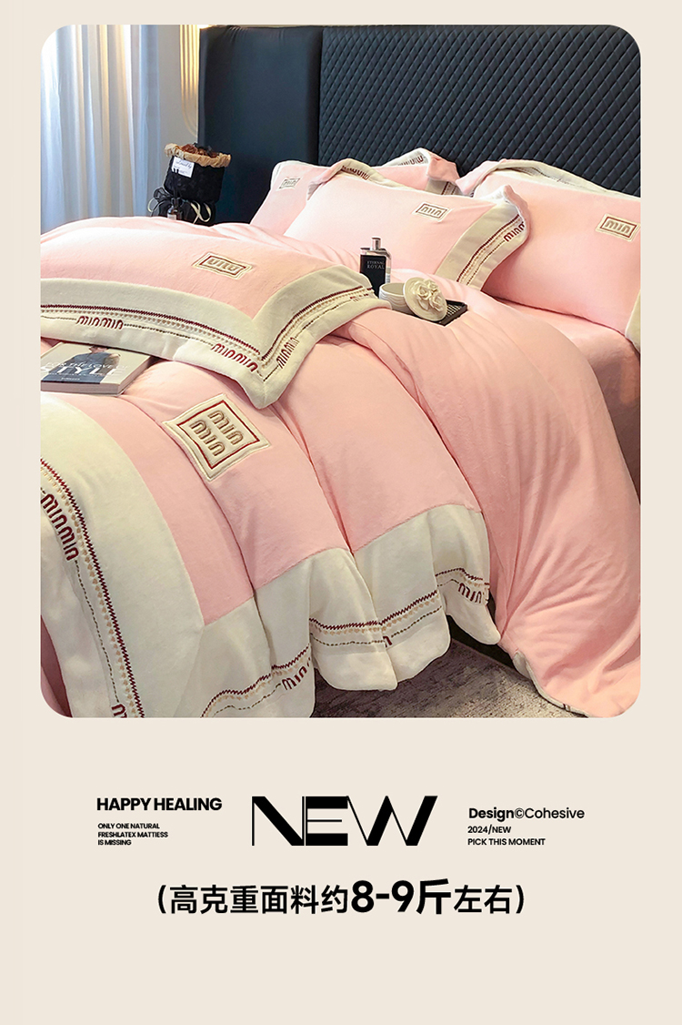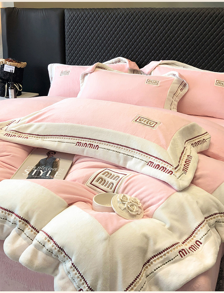 当前位置: 91家纺网 > 商品网购 > 床品套件 > 四件套 > 牛奶绒四件套 > 高档手提包9斤重超厚绵密慕斯有肌氧绒刺绣四件套秋冬加厚保暖牛奶绒宝宝绒床上用品 桃花粉-绒缪miu-超柔绵密慕斯有肌氧绒
