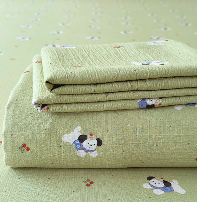 • 91家纺网 家纺一手货源 找家纺 麦乐迪 2025新款A类云感双层纱印花床笠 青趣萌狗
