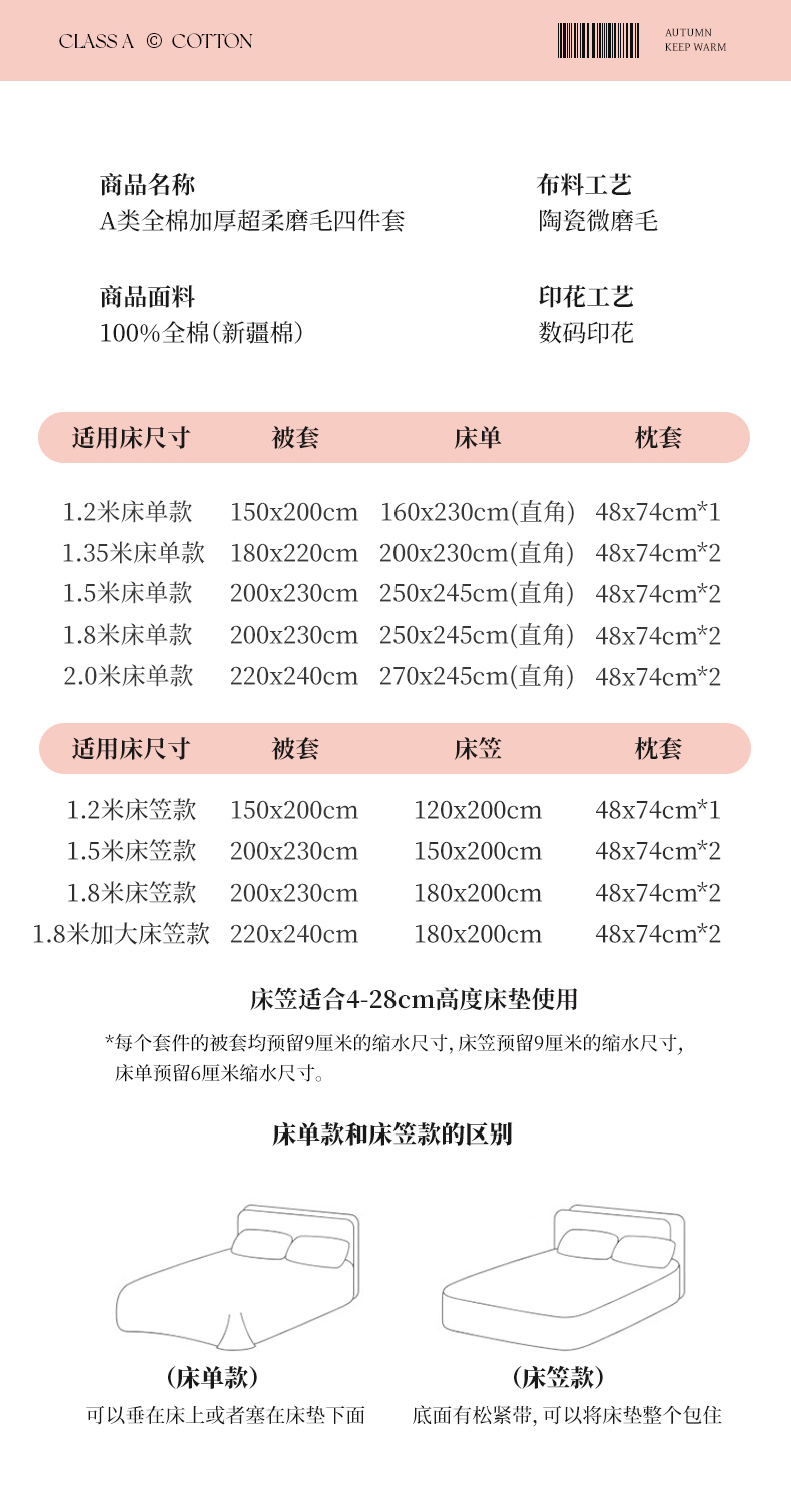 【床笠款】1.8四件套-被套200x230 | ¥146.00 |