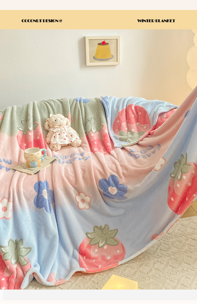 爱彼家纺 2025热门冬季加厚雪花绒印花多功能毛毯毯子修色图-系列二 花语兔