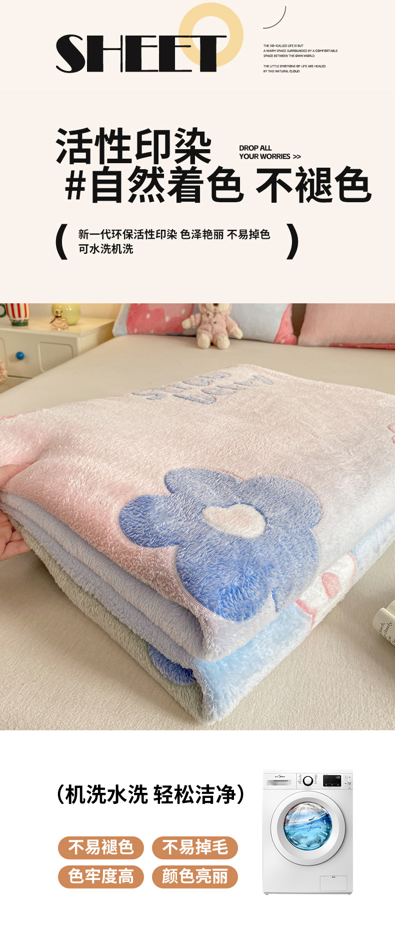 商品名称:爱彼家纺 2025热门冬季加厚雪花绒印花多功能毛毯毯子修色图-系列二 花语兔