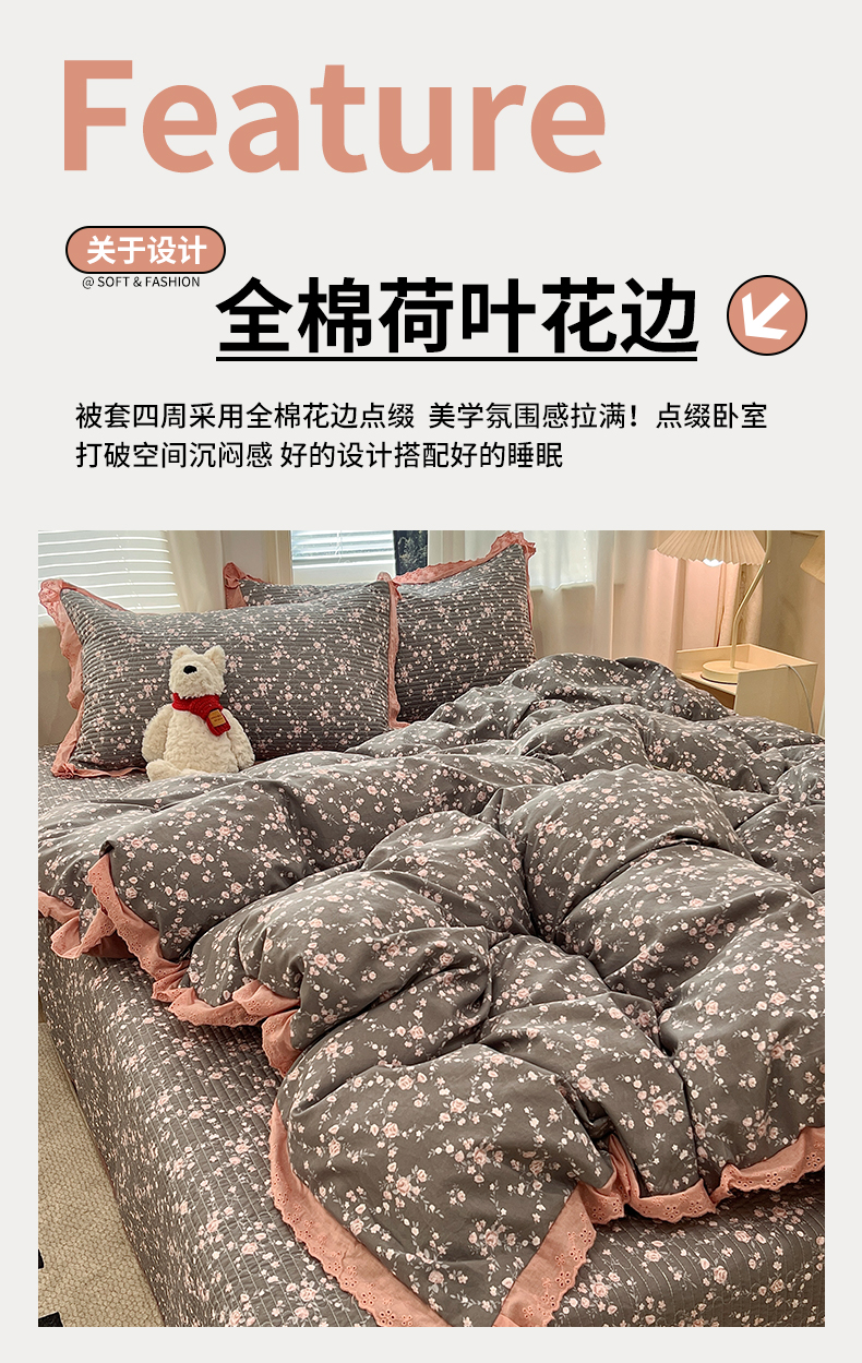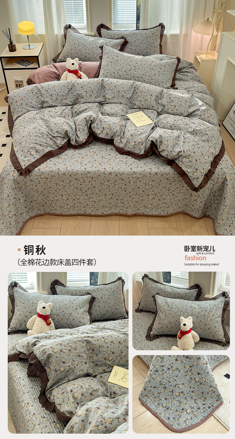 (总)优悦生活馆 2025新款全棉花边床盖四件套