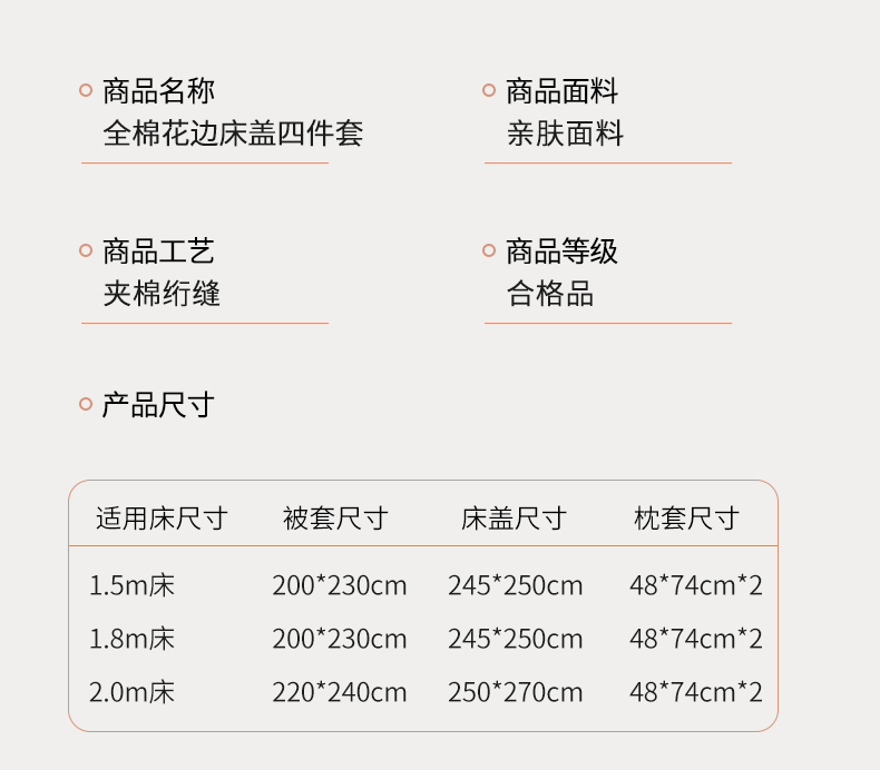 商品名称:(总)优悦生活馆 2025新款全棉花边床盖四件套