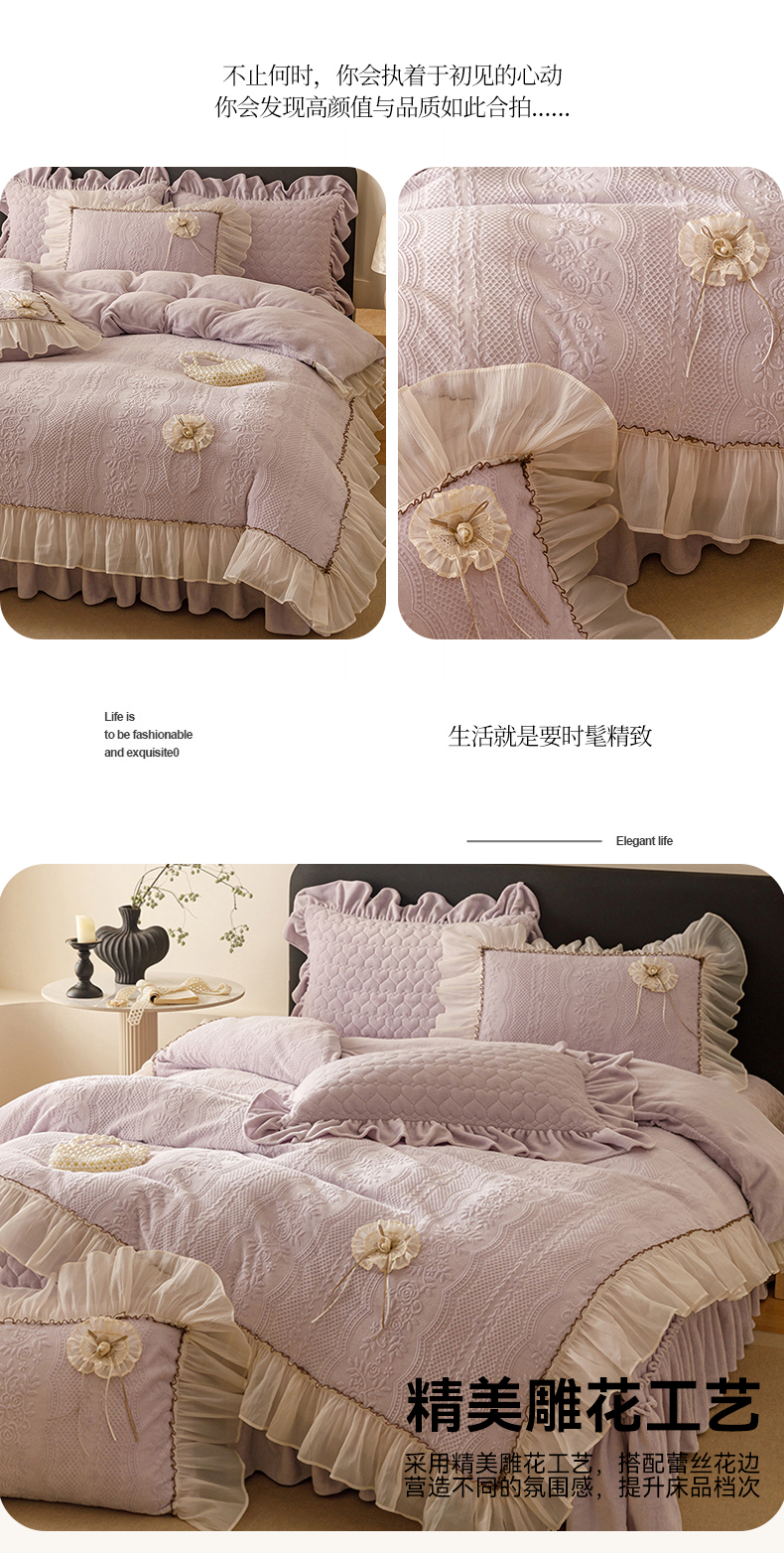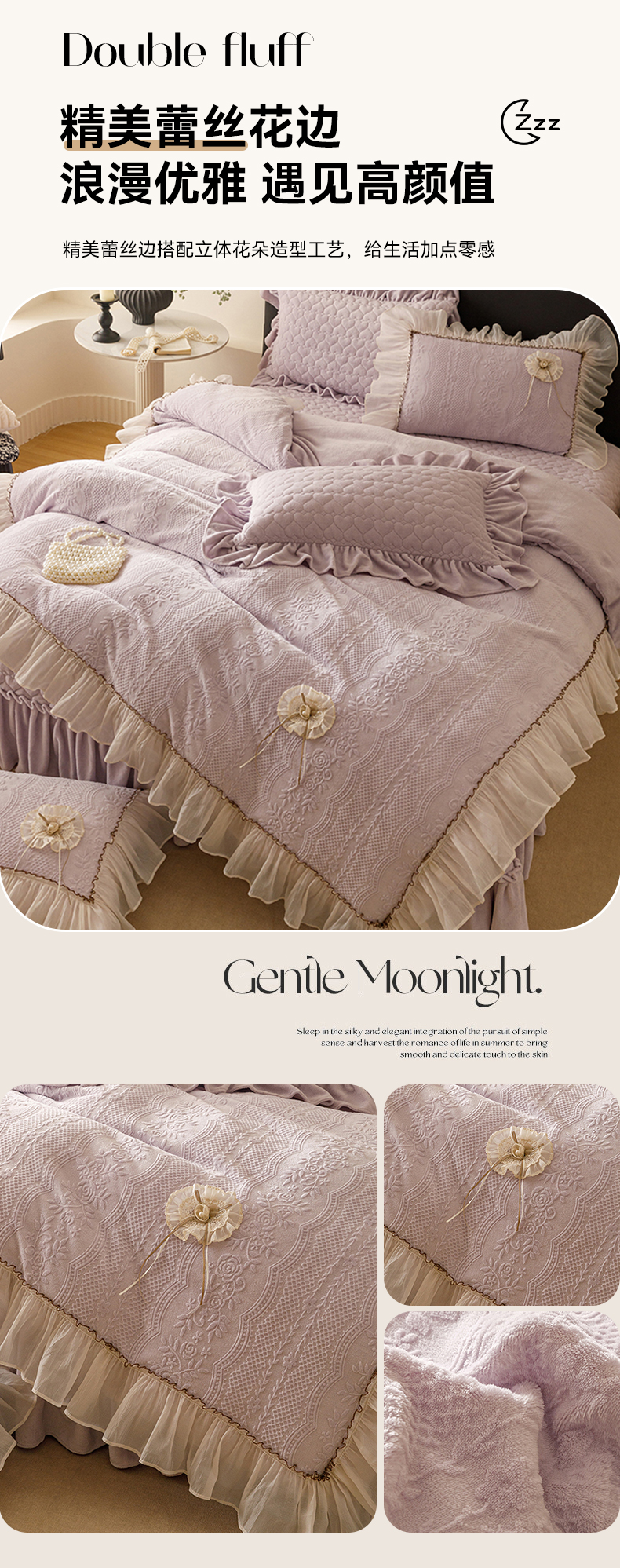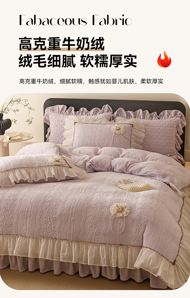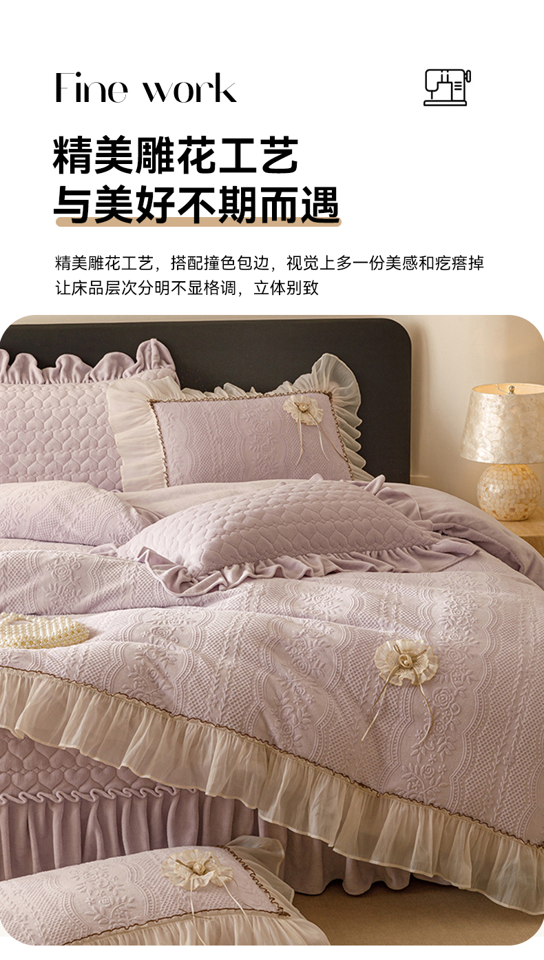 商品名称:好儿喜家纺 2025新款雕花牛奶绒床盖四件套-瑞享系列 瑞享-浅紫