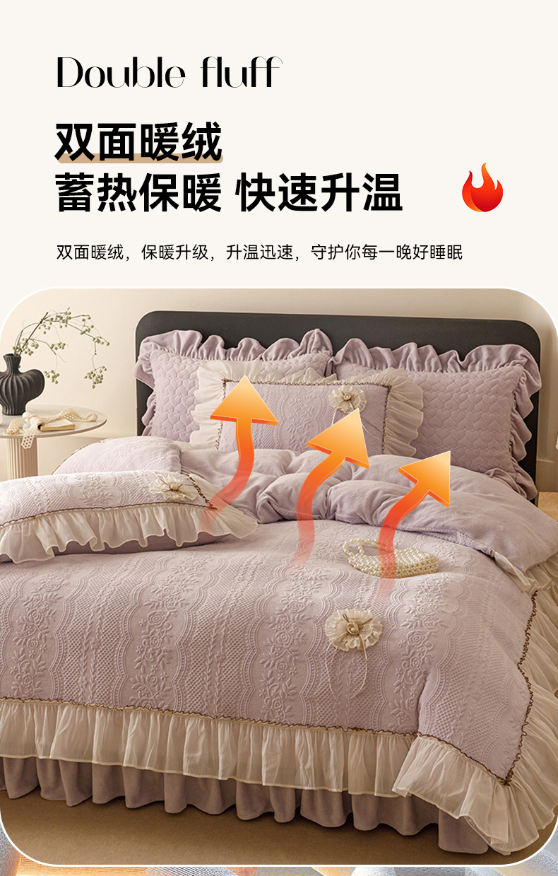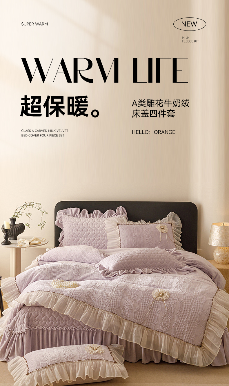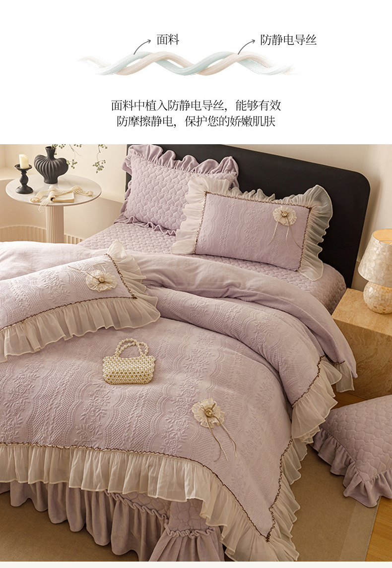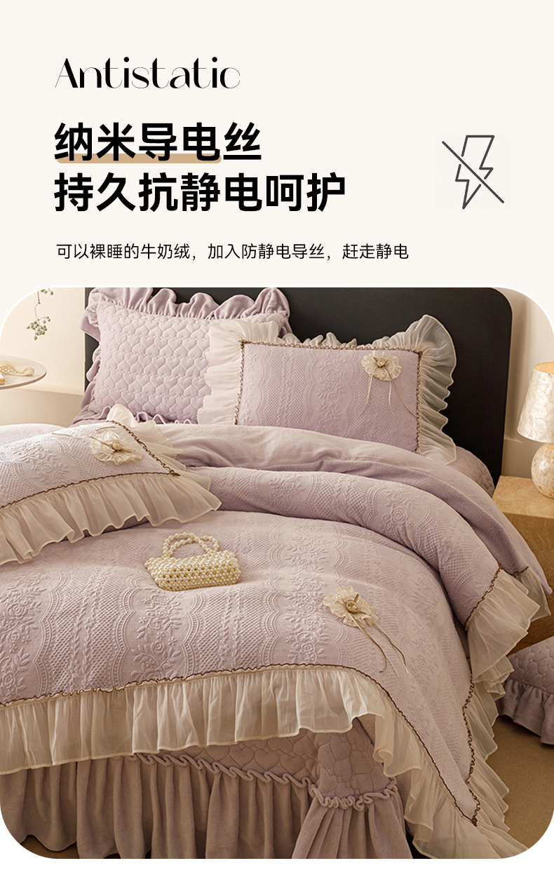 商品名称:好儿喜家纺 2025新款雕花牛奶绒床盖四件套-瑞享系列 瑞享-浅紫