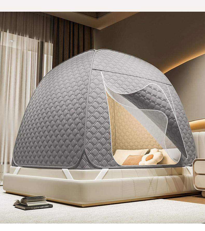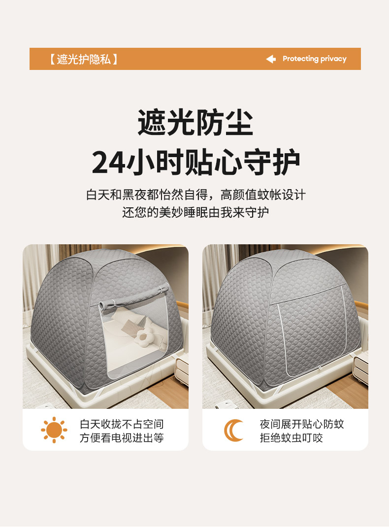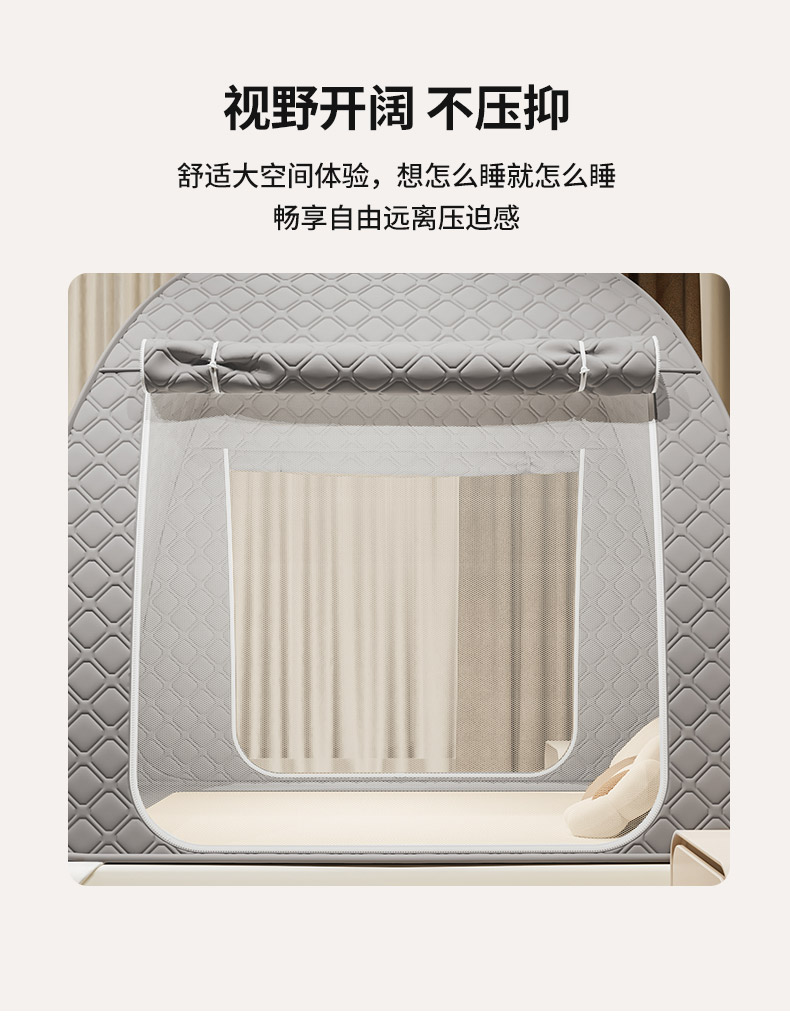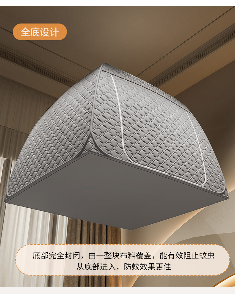 商品名称:海虹蚊帐 2025新款免安装保暖遮光钢丝蚊帐 浅灰夹棉特厚全底