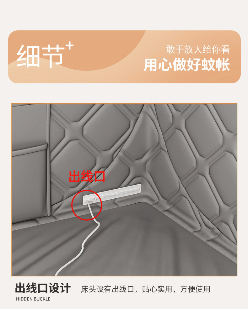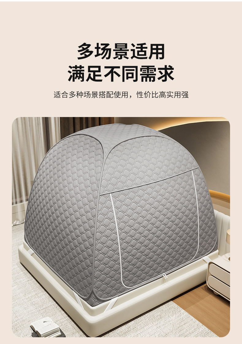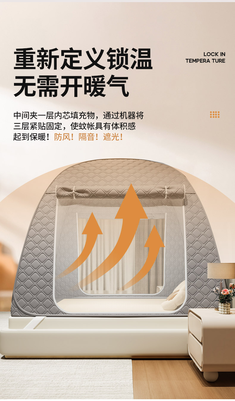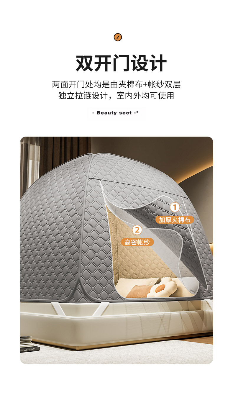 商品名称:海虹蚊帐 2025新款免安装保暖遮光钢丝蚊帐 浅灰夹棉特厚全底
