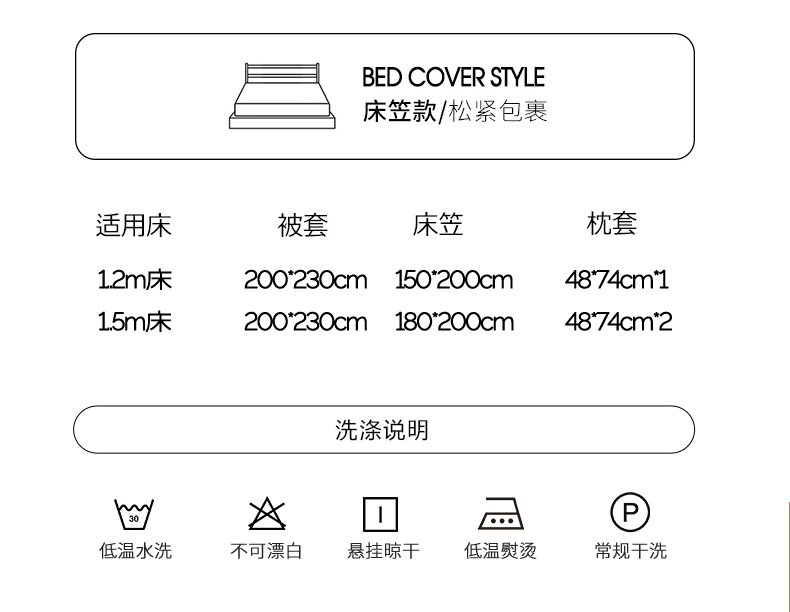 【床笠款】1.8四件套-被套200x230 | ¥50.00 |