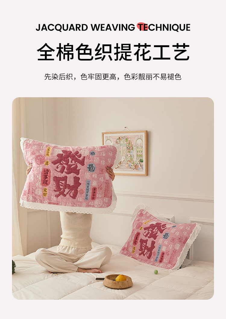 沐瑟家纺 2025新款花边枕巾 发财-绿