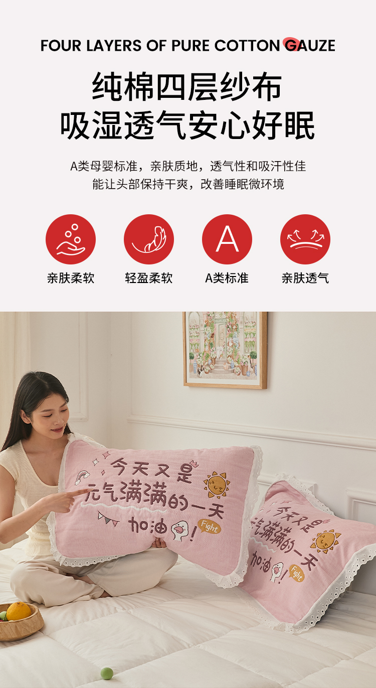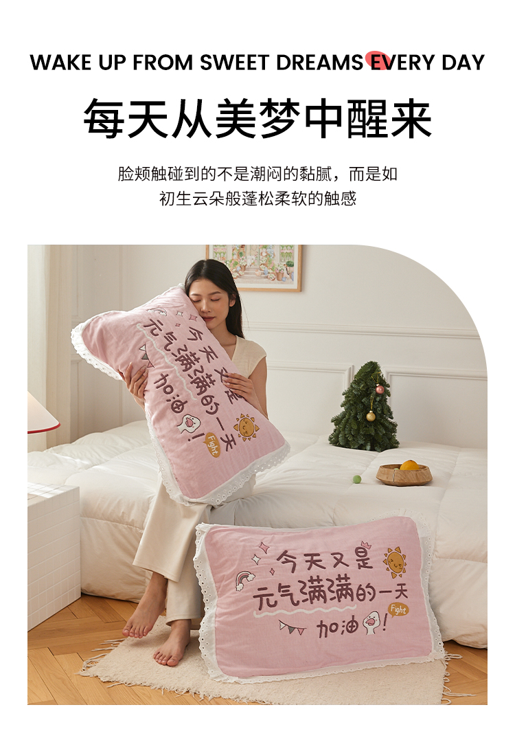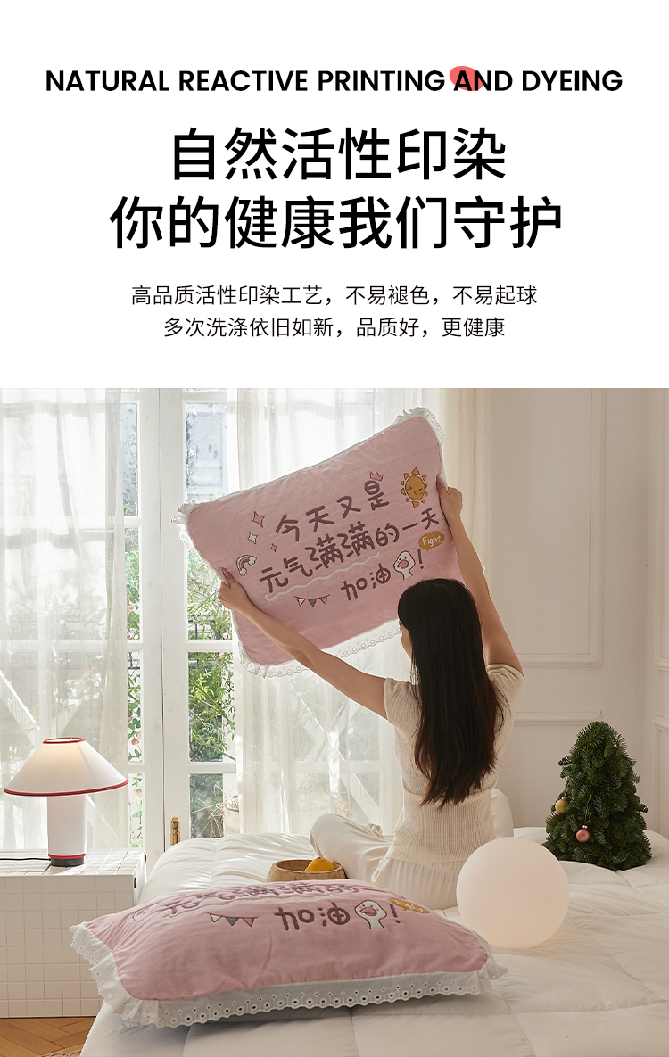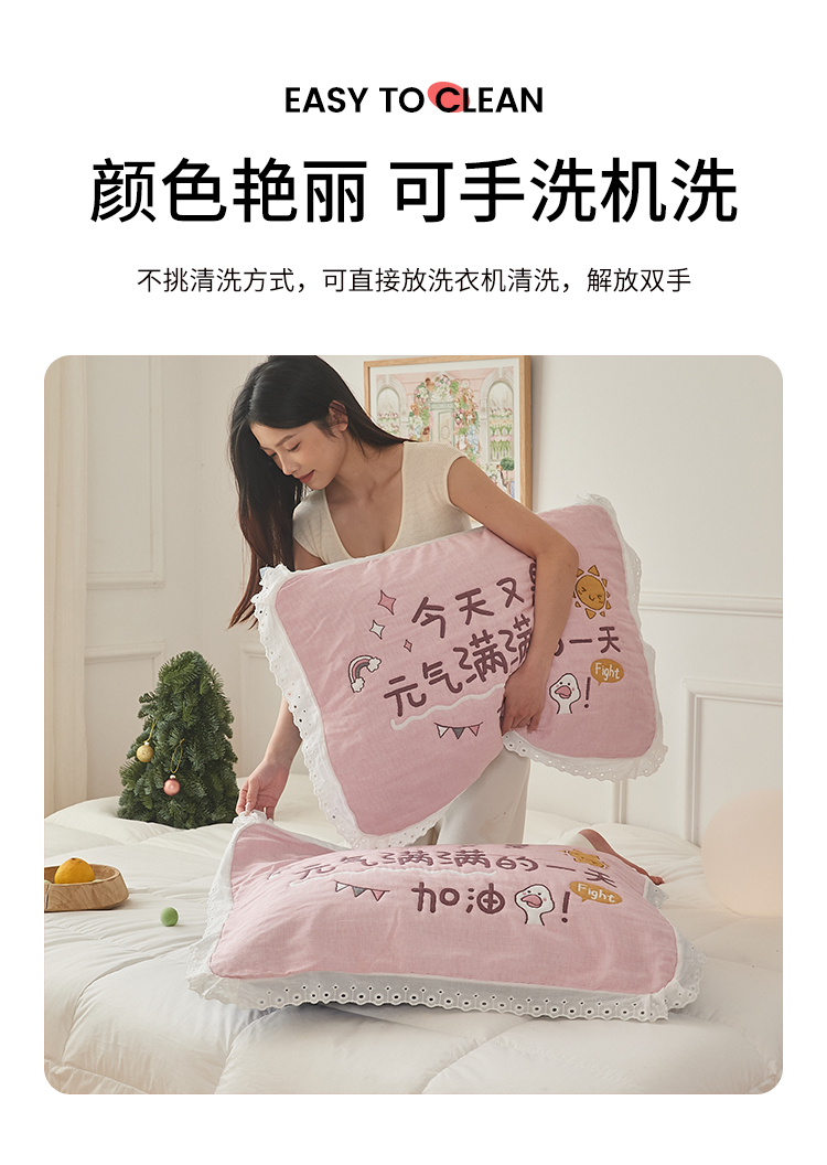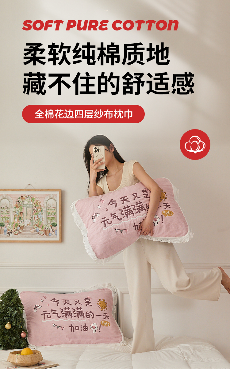 沐瑟家纺 2025新款花边枕巾 元气满满