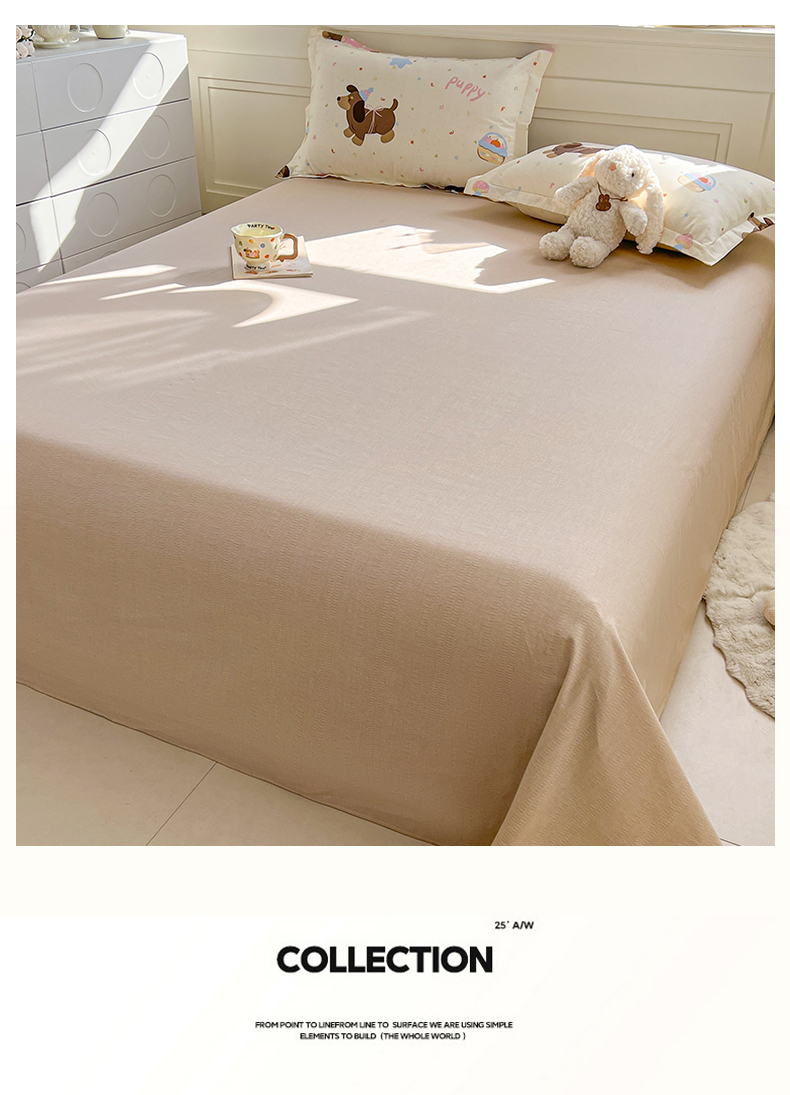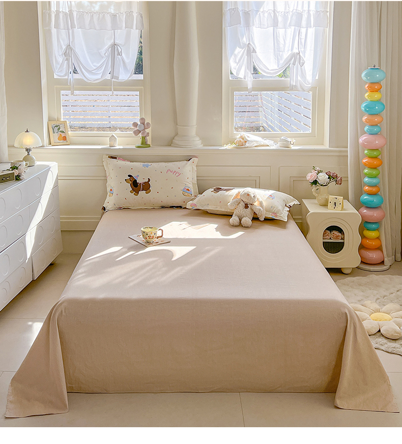 • 91家纺网 家纺一手货源 找家纺 名优家纺 2026新款12868全棉小清新印花四件套单品系列-单床单 困困腊肠狗