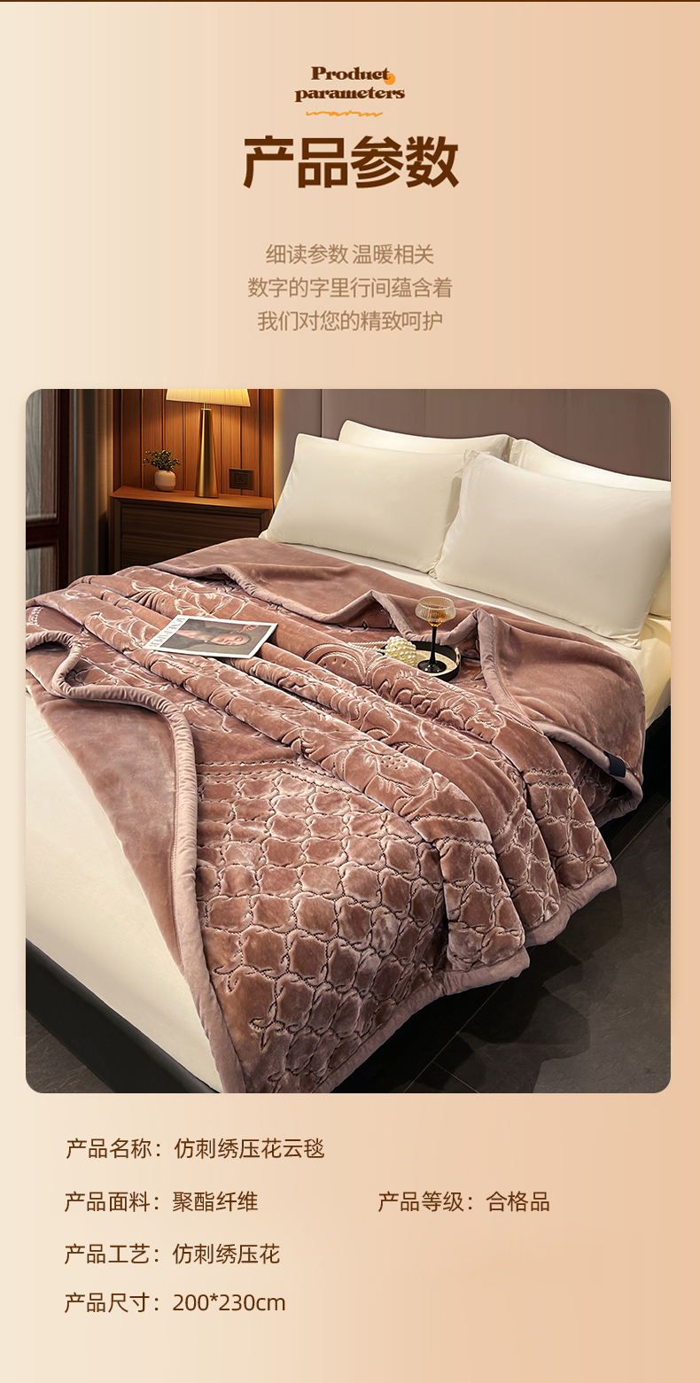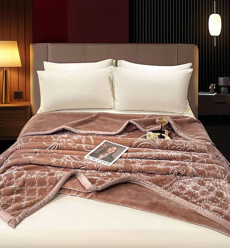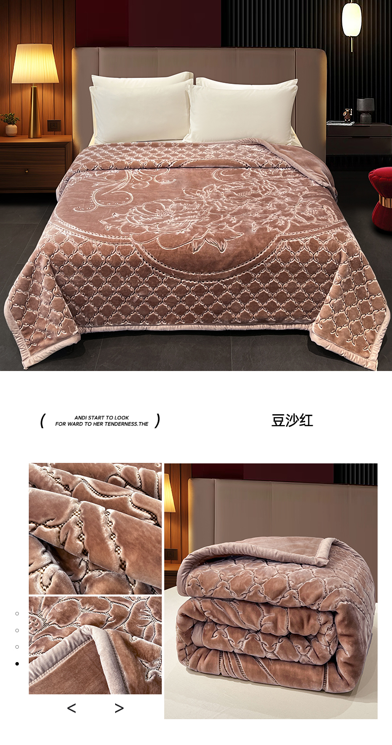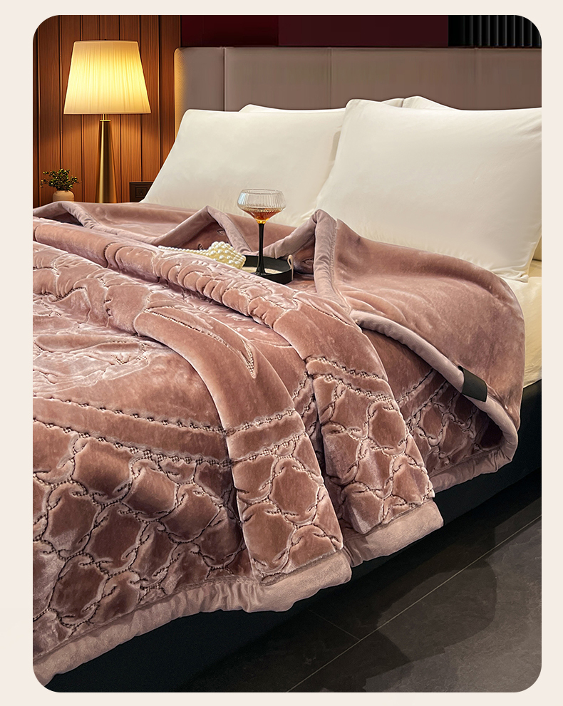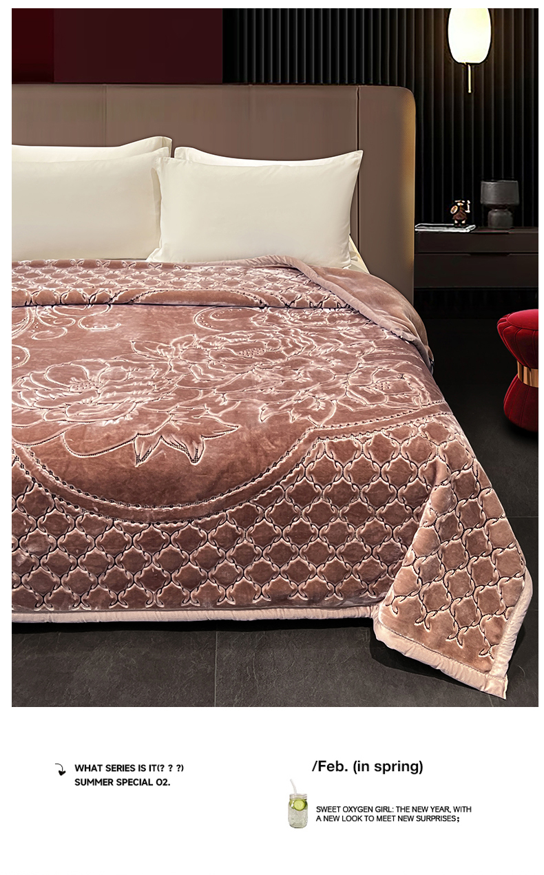 (总)凯轩毛毯网销专供 2026新款仿刺绣双层加厚压花云毯,豆沙红,绛紫色,孔雀绿,奶油咖,珊瑚粉,深灰色