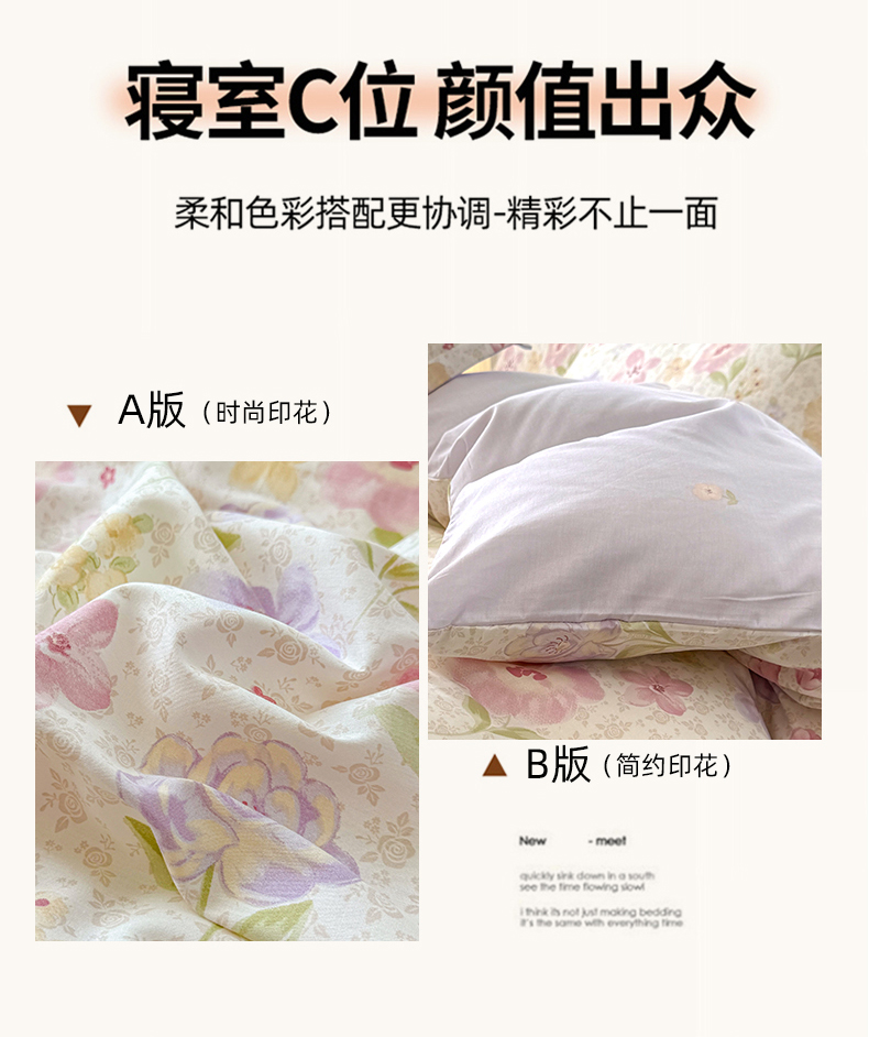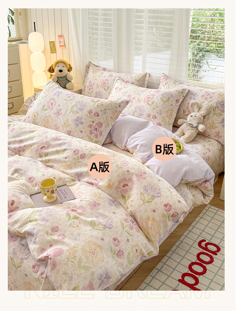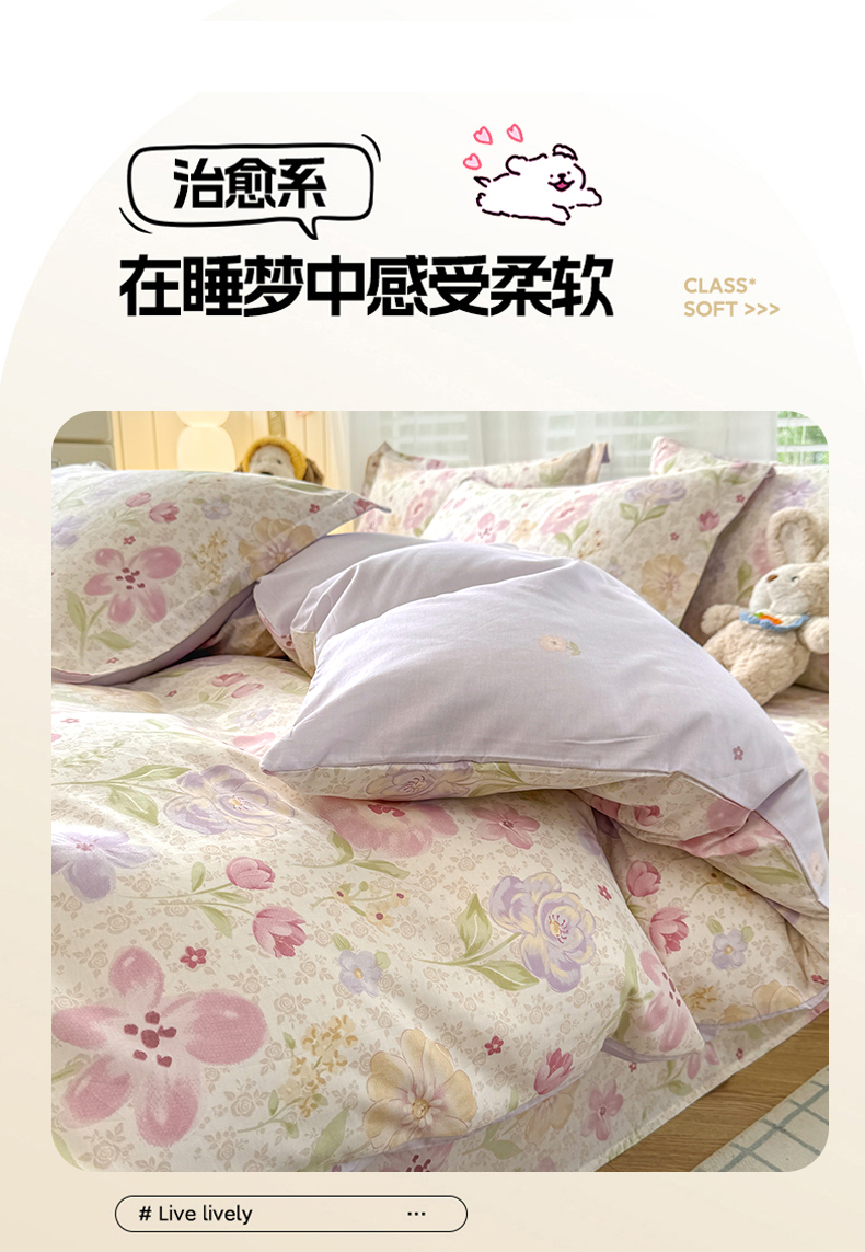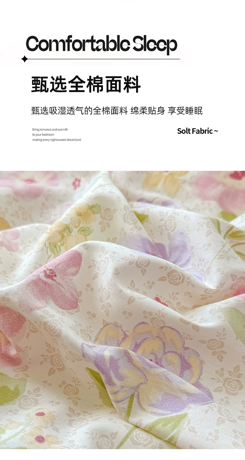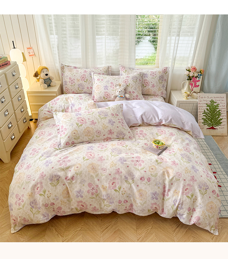 当前位置: 91家纺网 > 商品网购 > 床品套件 > 四件套 > 全棉普通四件套 > 尚帛 2026新款全棉品质喷气印花爆款四件套 多规格套件 单品系列-四件套 甜心花朵