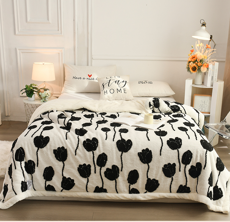 恋绒家纺 2025新款阳离子三层舒棉绒毛毯毯子 复古花枝