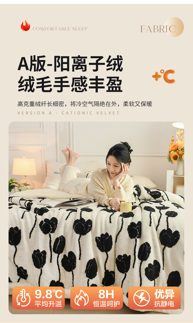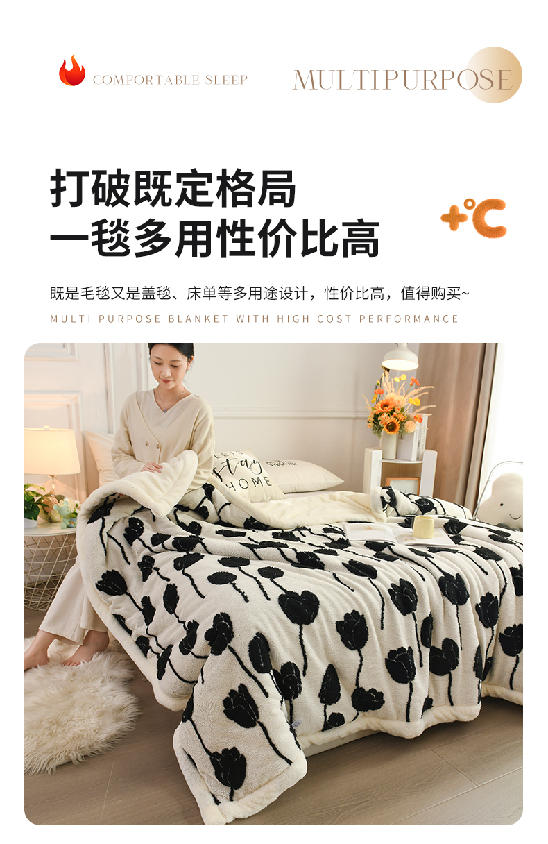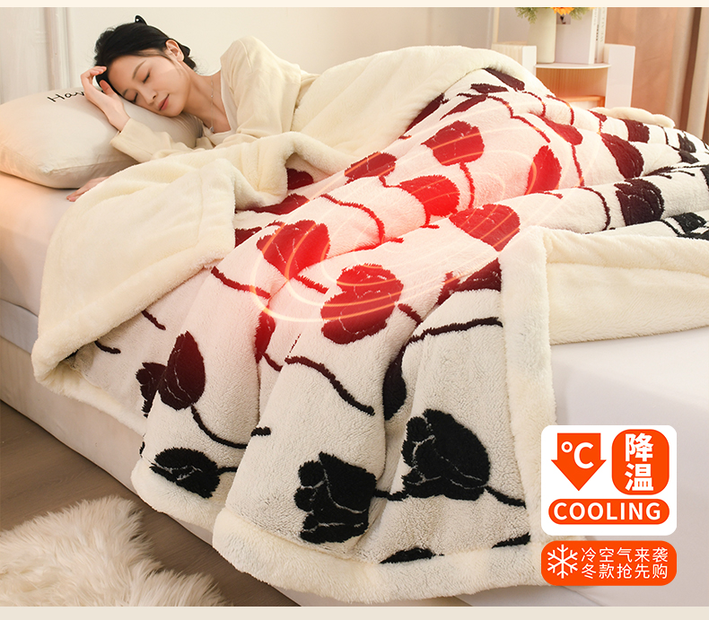 商品名称:恋绒家纺 2025新款阳离子三层舒棉绒毛毯毯子 复古花枝