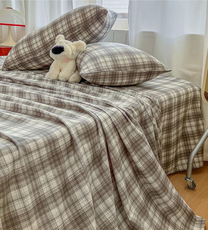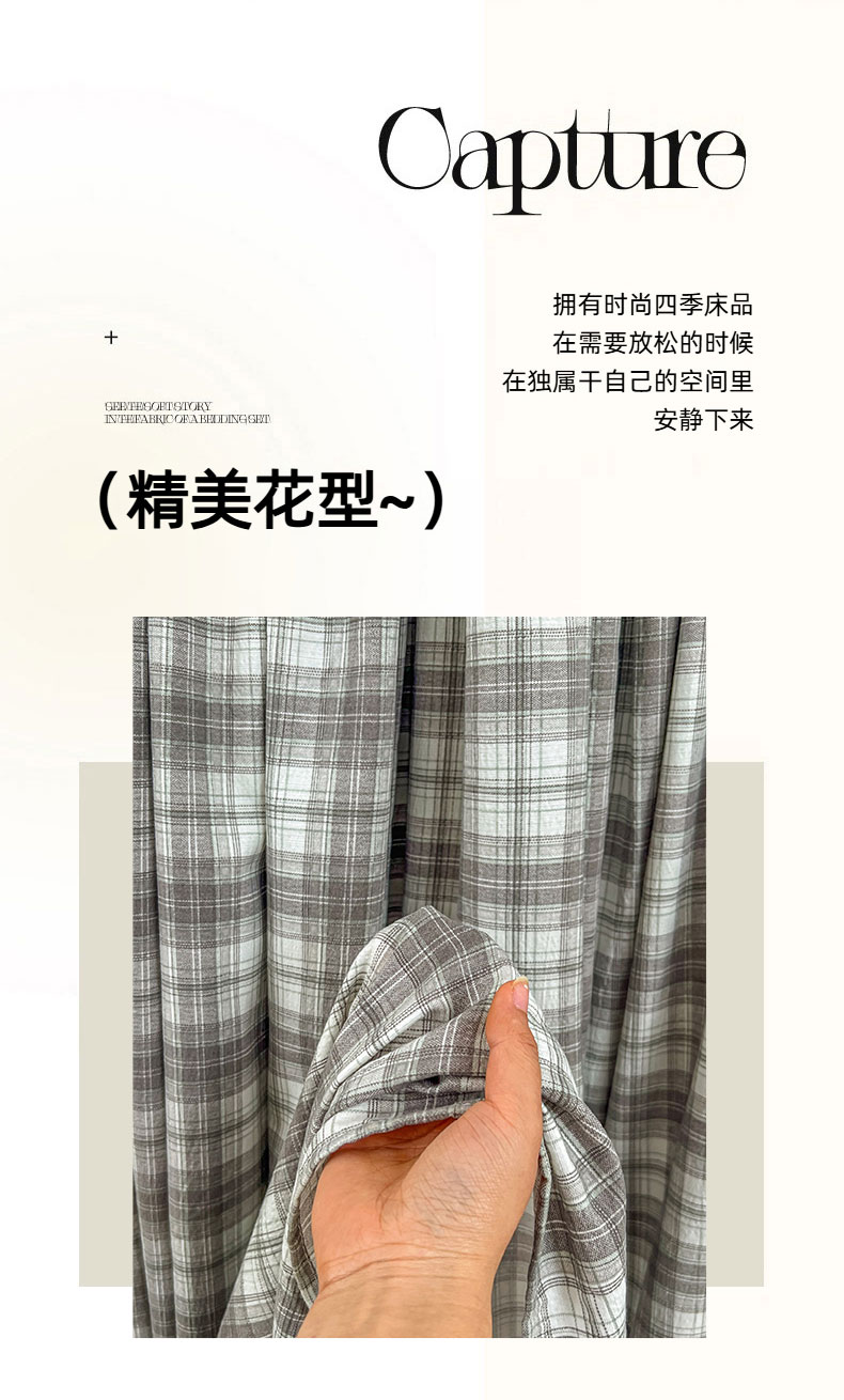(总)思诺羽床笠 2026新款亲肤云朵双层纱无印风水洗棉三件套四件套,浅咖条,布林灰,海蓝条,黄绿条,灰白条,简兮格,科隆绿格,米兰格,奶霜条,浅蓝条,映像格,云纱条