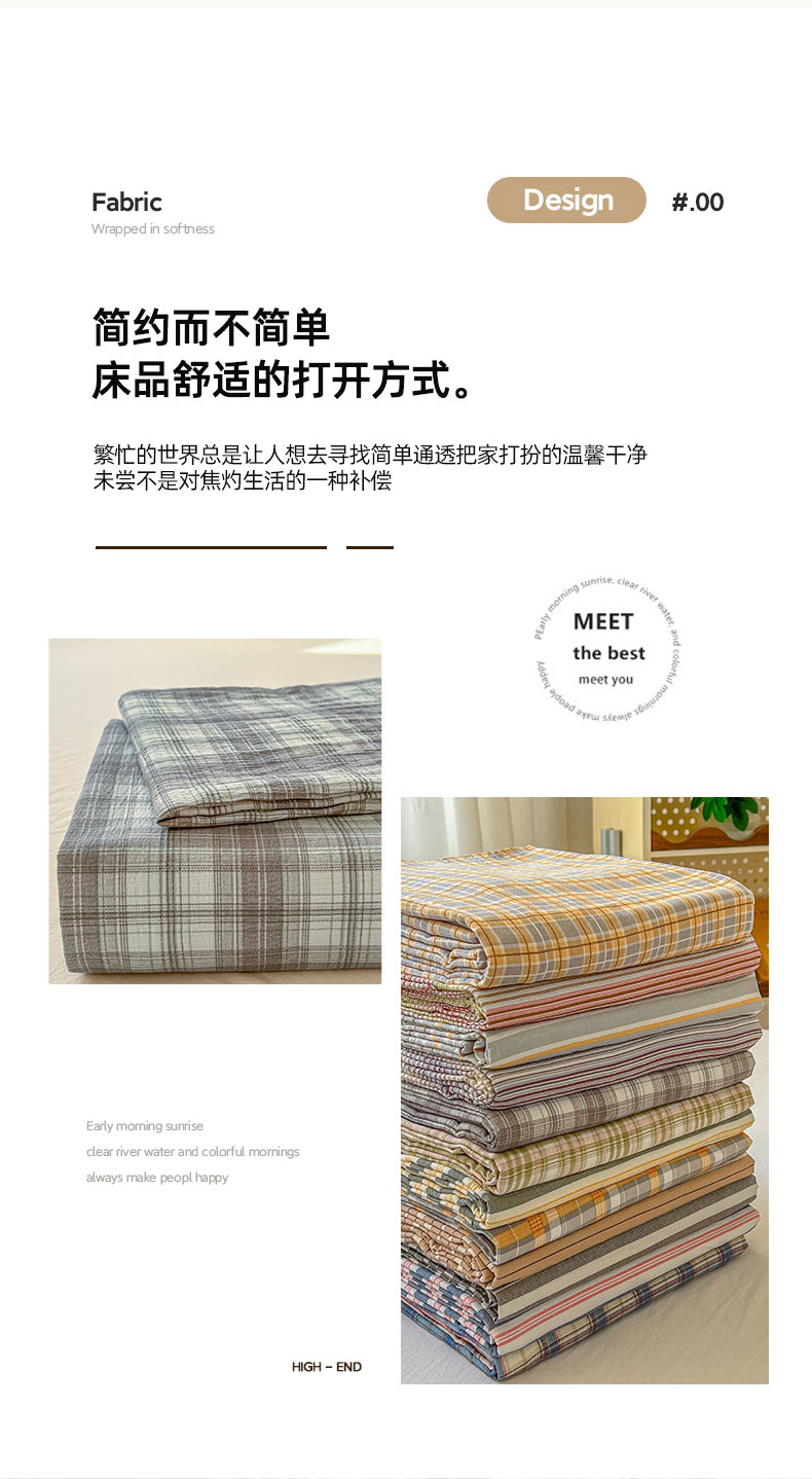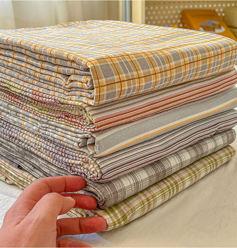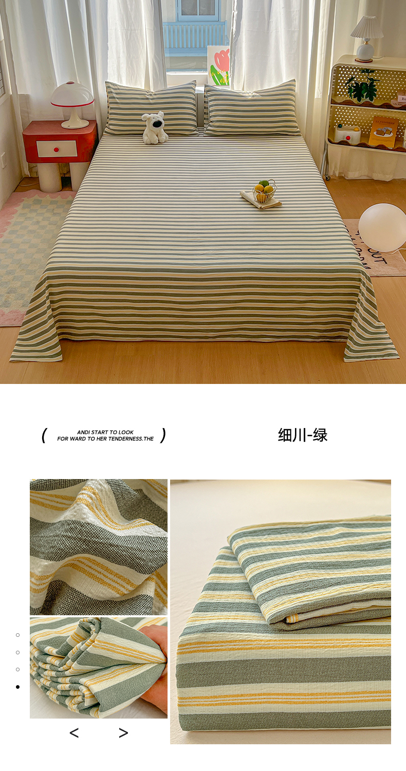 • 91家纺网 家纺一手货源 找家纺 (总)思诺羽床笠 2026新款亲肤云朵双层纱无印风水洗棉三件套四件套,浅咖条,布林灰,海蓝条,黄绿条,灰白条,简兮格,科隆绿格,米兰格,奶霜条,浅蓝条,映像格,云纱条