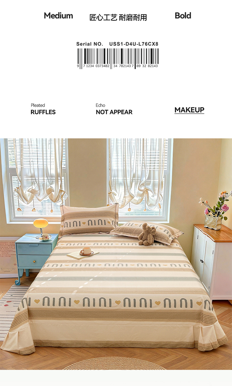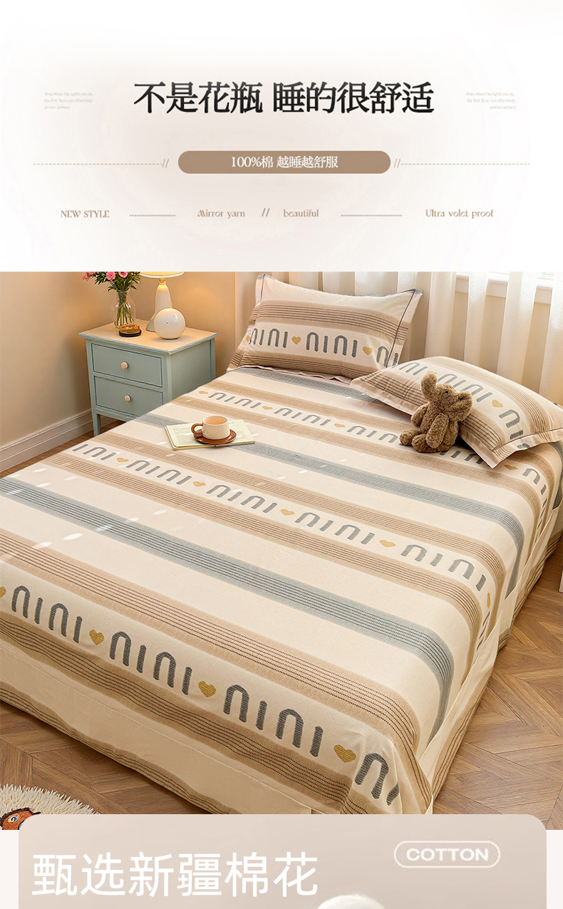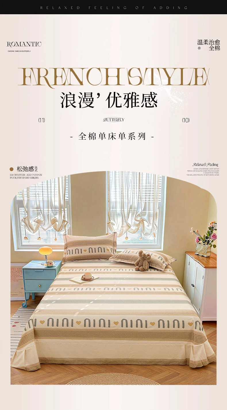 名优家纺 2026新款60S13374高支密全棉印花纯色单床单 初见