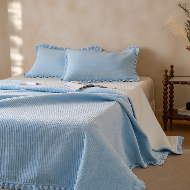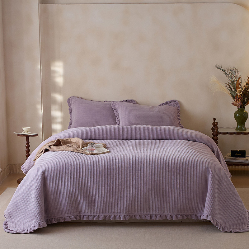 良品汇馆 2026新款秋冬保暖纯色绒布牛奶绒床盖三件套 卡其