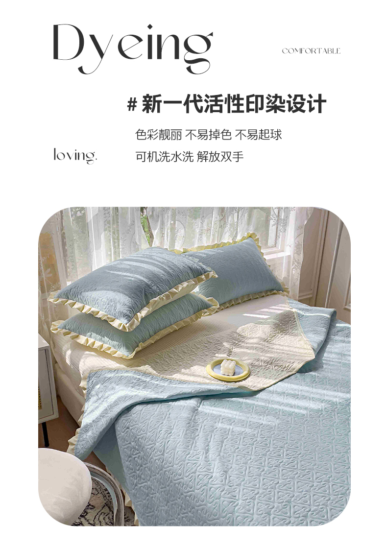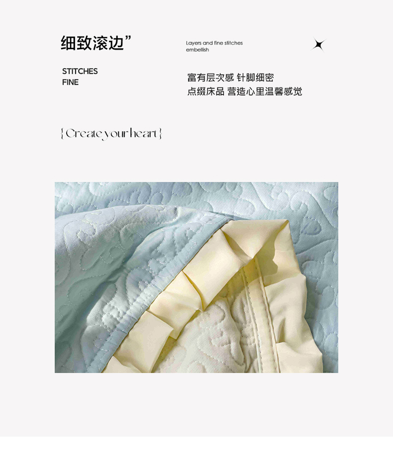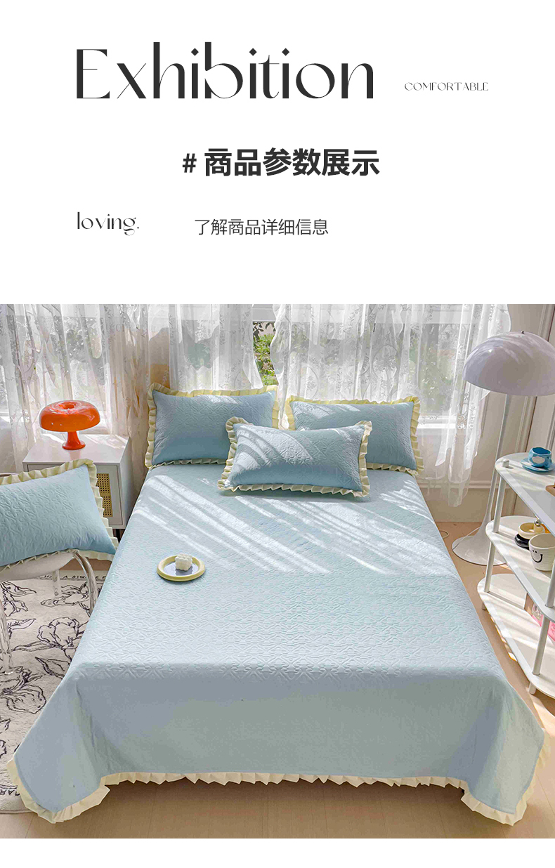 • 91家纺网 家纺一手货源 找家纺 (总)妮可 2026新款绗缝多功能四季款花边单床盖床盖单件单品床盖,冰湖蓝,豆豆沙,梦幻粉,奶油黄,气质灰,森林绿,芝兰紫,组合图仅供展示不可下单