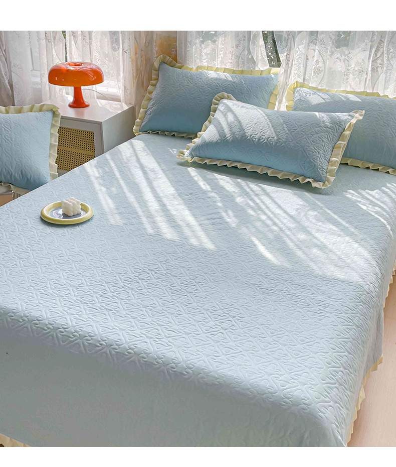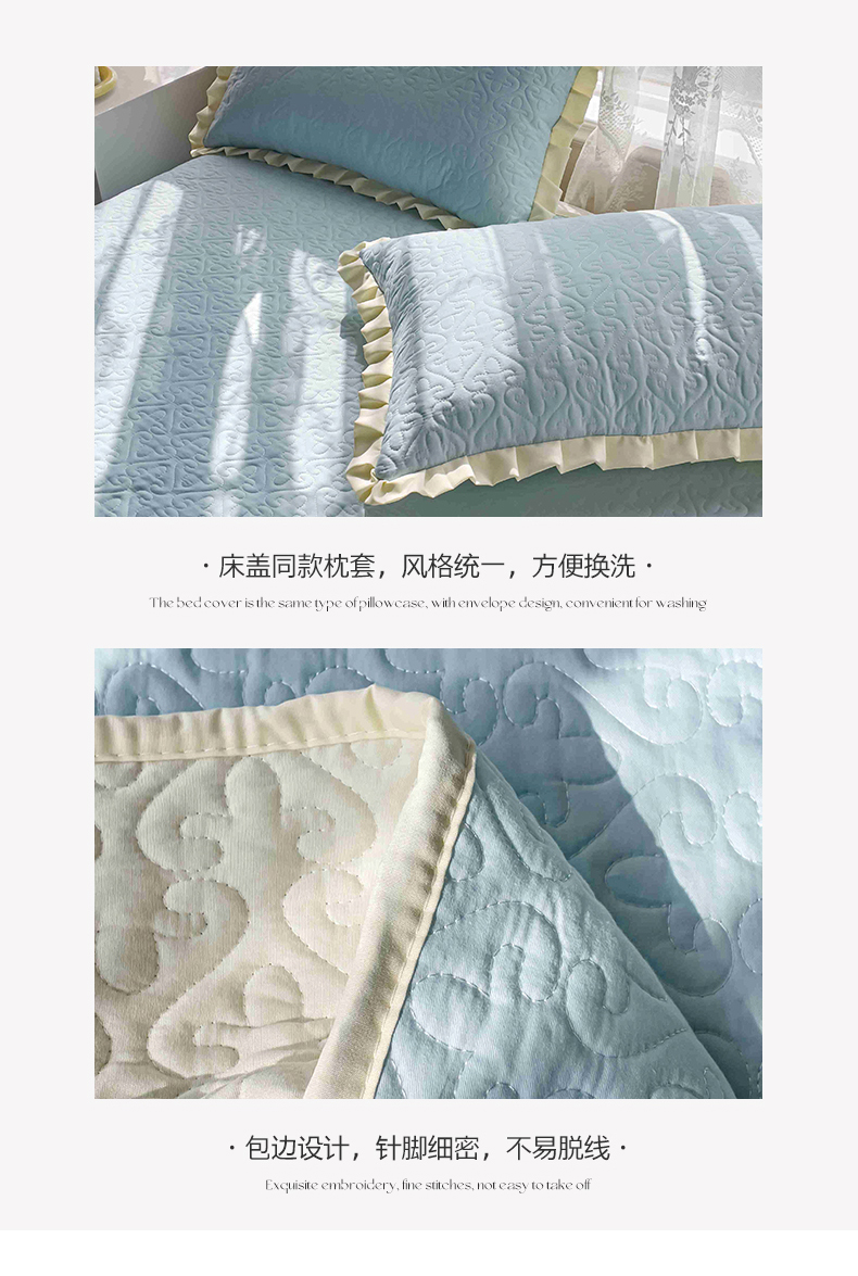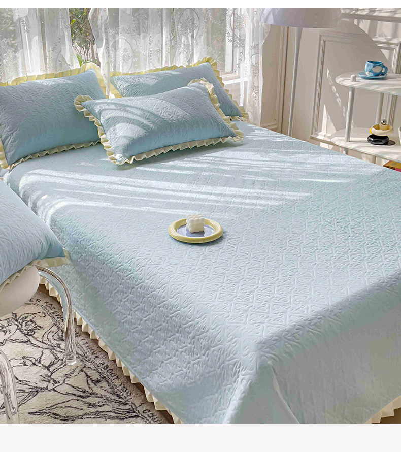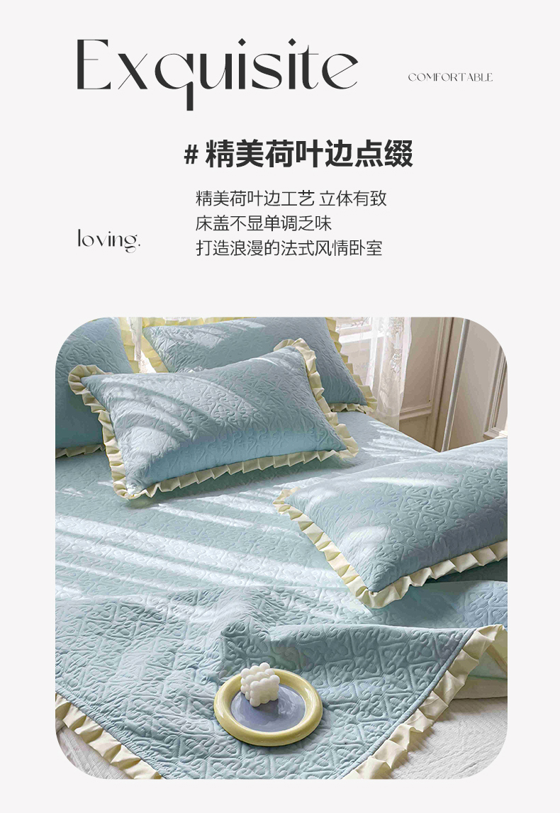 • 91家纺网 家纺一手货源 找家纺 妮可 2026新款全棉纯棉绗缝多功能四季款荷叶边单床盖床盖单件单品床盖 浅水蓝