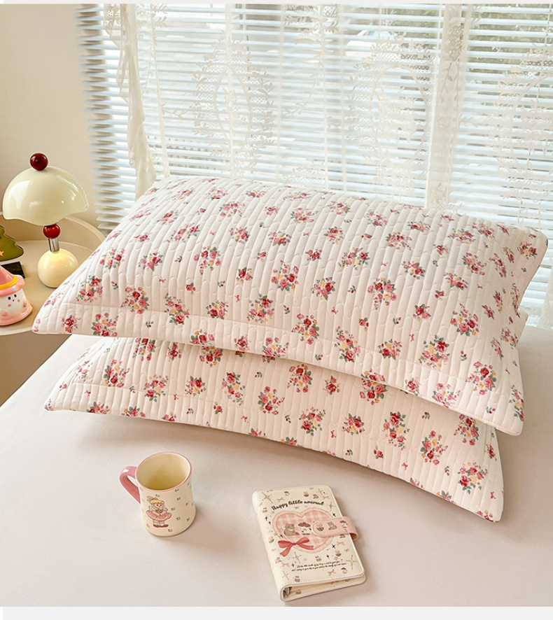梦舒羽 2025新款A类云朵棉夹棉枕套宿舍单人一只装枕芯内胆套-单人枕套 粉黛花园(压线夹棉)